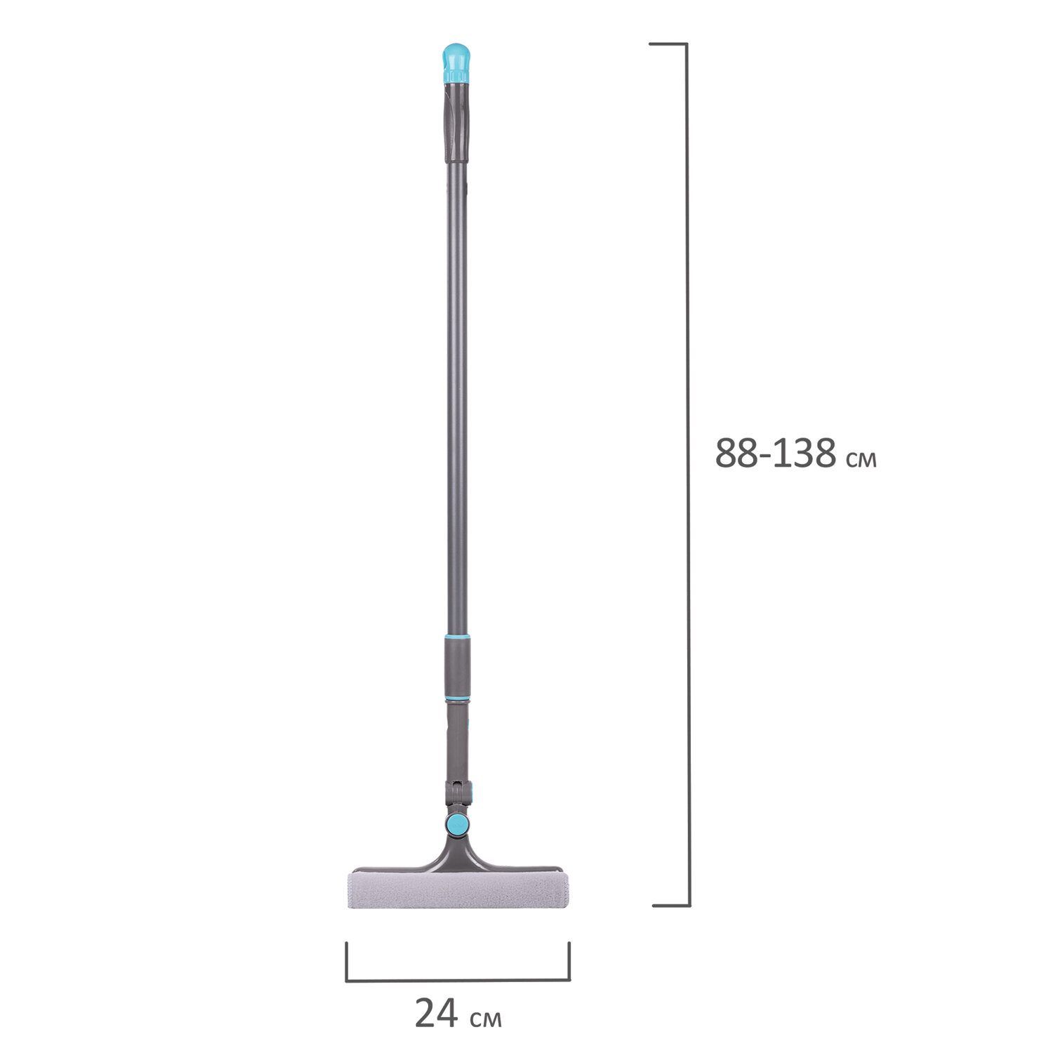 Выполняет две функции: мытье стеклянной поверхности с помощью спонжа и сгон воды резиновым лезвием. Телескопическая ручка с вращающейся рабочей частью упрощает уборку. Длина телескопической ручки - 88-138 см. Ширина рабочей части - 24 см.