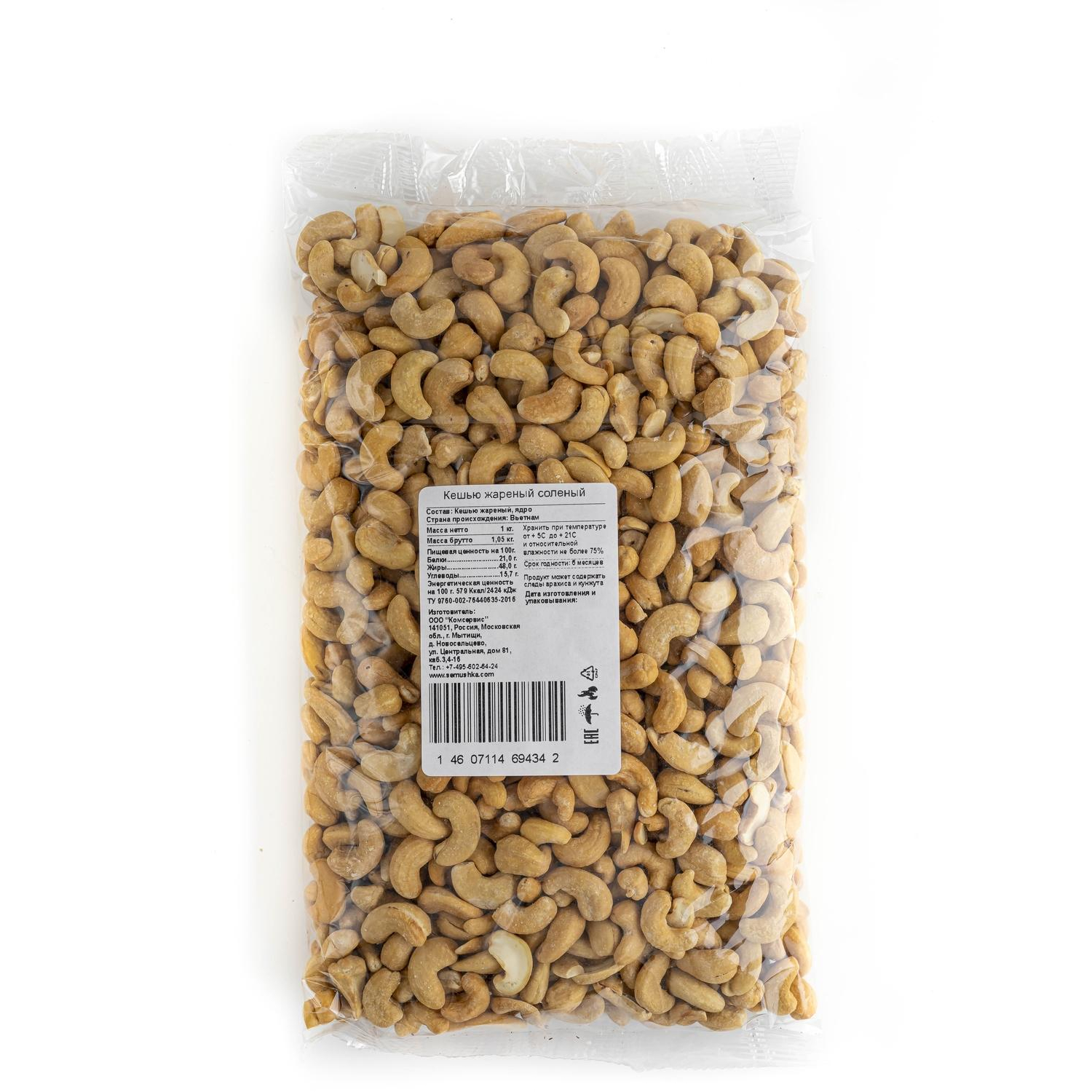 Ядра орехов кешью жареные соленые обладают натуральным вкусом и ароматом, характерным для орехов кешью. Обжариваются с добавлением масла и соли без посторонних примесей и добавок. Кешью является питательным и вкусным орехом, применяемым в кулинарии и кондитерском производстве. Его также можно использовать как полезный и вкусный перекус в течение рабочего или учебного дня!