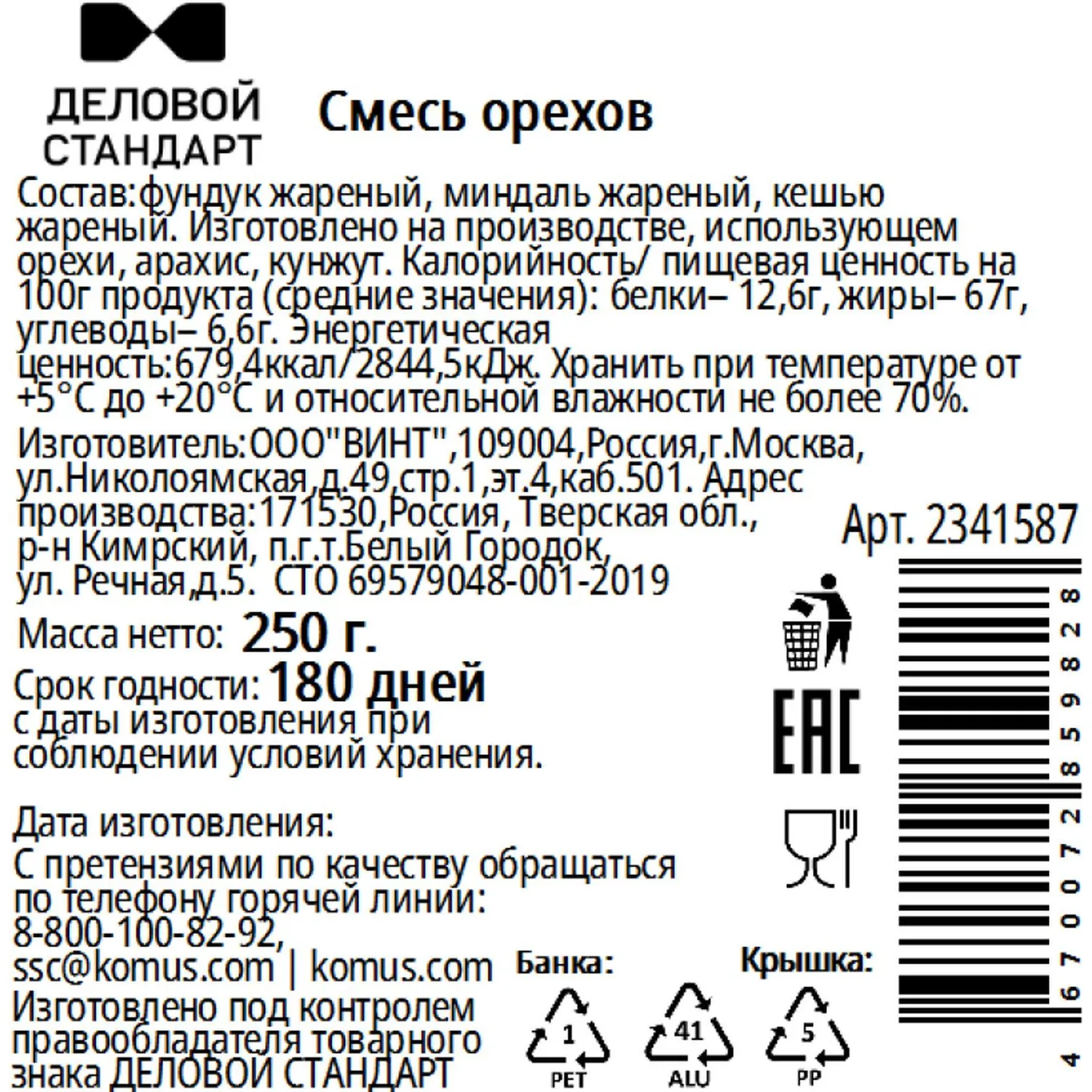 О товаре «Ореховая смесь Деловой Стандарт в банке, 250 г»