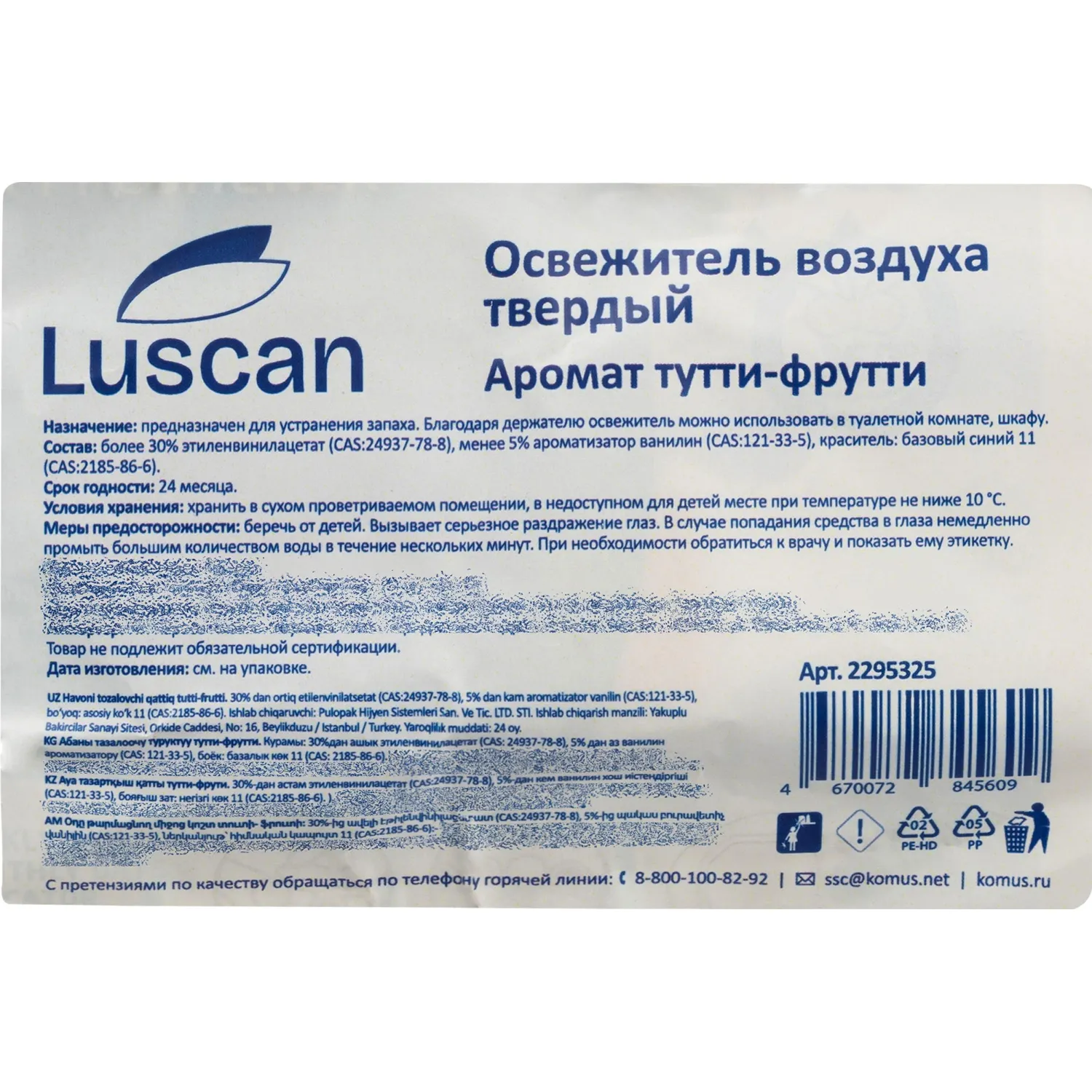 О товаре «Освежитель воздуха твёрдый Luscan Тутти-фрутти 37 г»