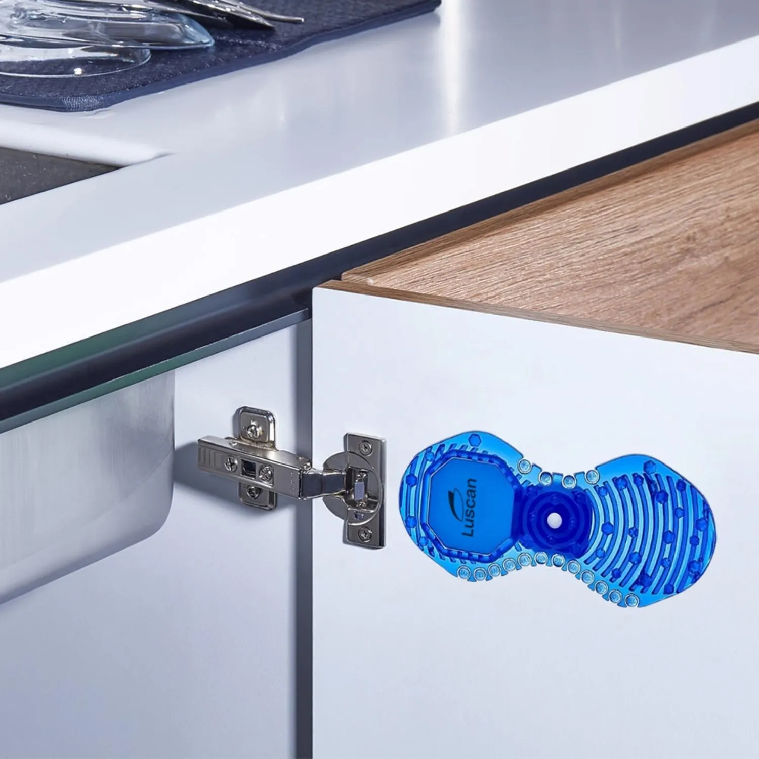 Освежитель воздуха в виде твёрдой пластины устраняет неприятные запахи и придаёт помещению фруктовую свежесть. Его удобно размещать в туалетной комнате или шкафу. Благодаря удобному держателю освежитель размещается на любой вертикальной поверхности, это удобно при использовании в ванной комнате, уборной или на кухне. Возможно размещение в шкафу или тумбе.