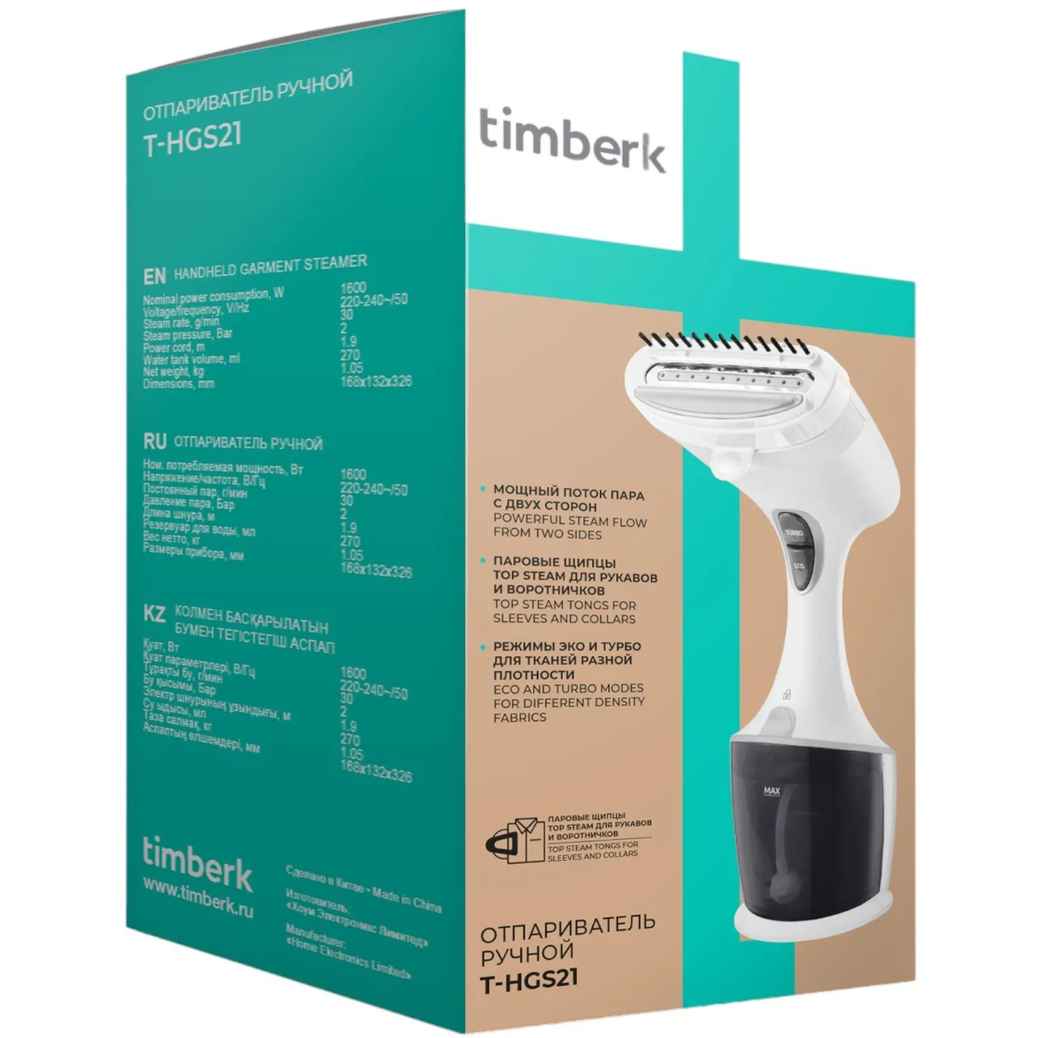 О товаре «Отпариватель Timberk T-HGS21, ручной, сталь, 270мл, 2 режима, белый»