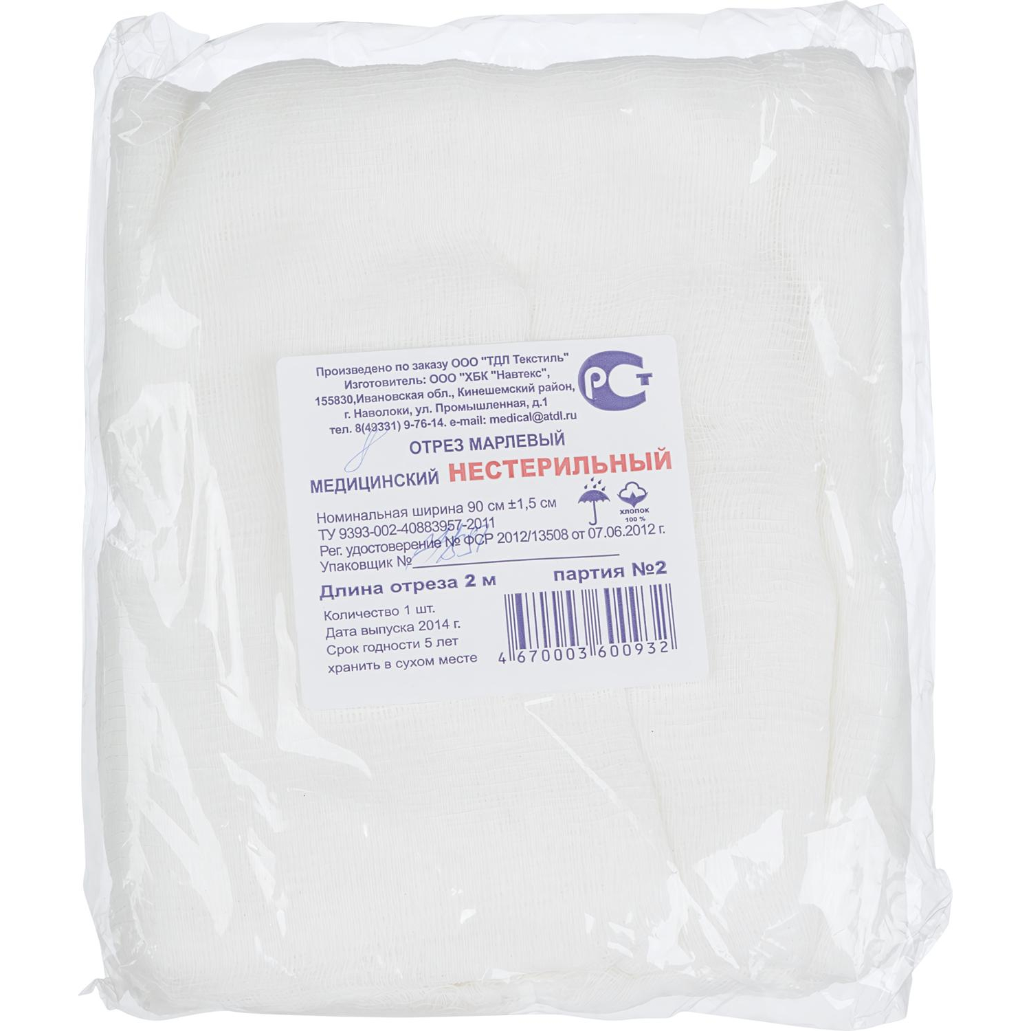 Назначение: марлевые отрезы применяются в медицинских учреждениях для изготовления индивидуальных перевязочных материалов. В случаи контакта с открытой раневой поверхностью могут использоваться только после стерилизации.