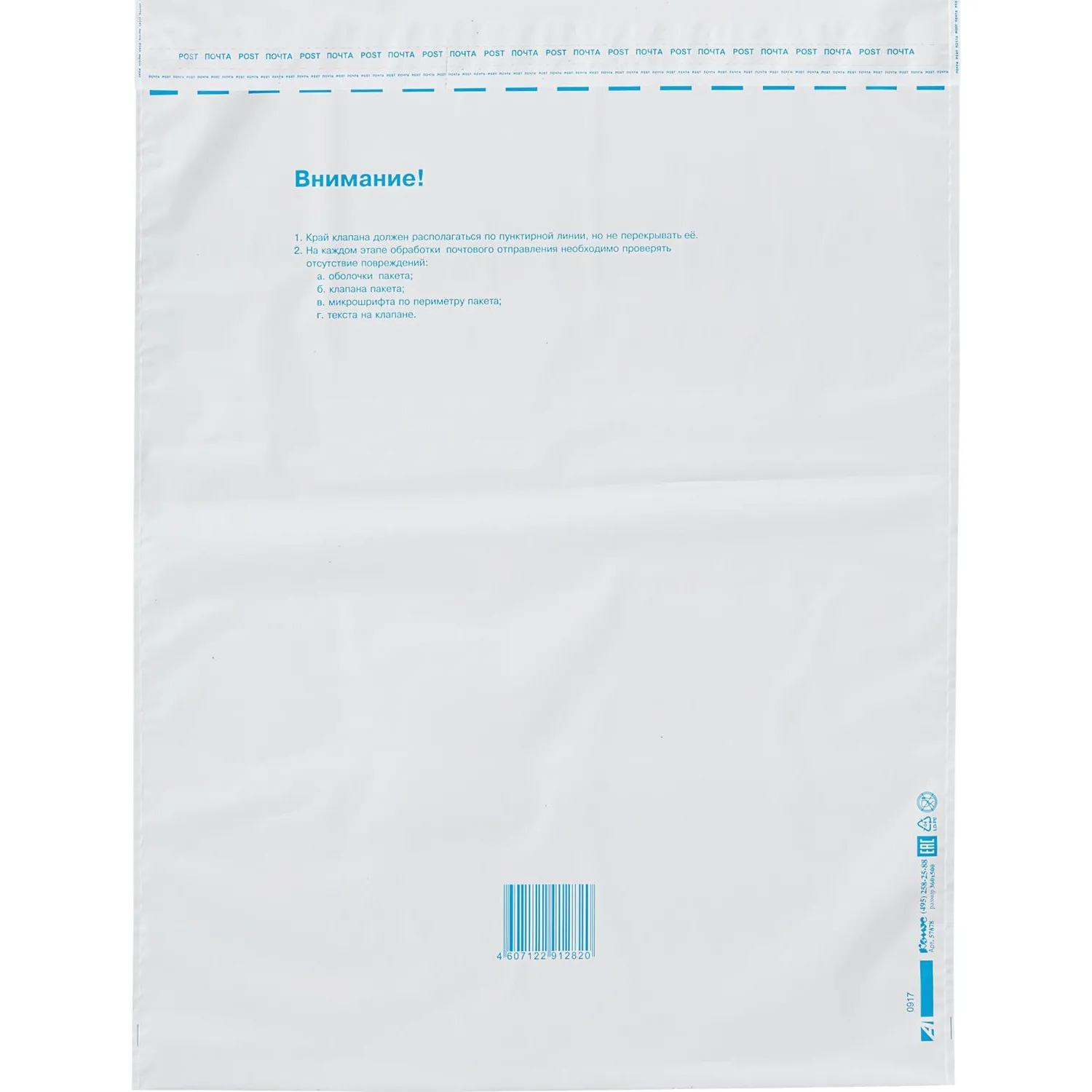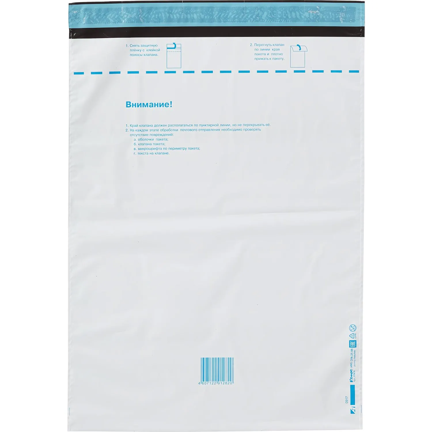 Пакет Amerplast (360×500 мм) из полиэтилена 70 мкм стрип (250 штук в упаковке) изготовлен из трехслойного непрозрачного полиэтилена, имеет почтовый подсказ 'Куда-Кому' и снабжен отрывной клейкой лентой. Толщина 70 микрон. Преимущества:- многослойный полиэтилен высокой прочности защищает вложение от влаги и механических повреждений;- непрозрачность материала исключает возможность определить содержание вложения;- возможность нанесения информации шариковой ручкой;- поверхности определенных зон пакета обеспечивают качество наносимых текстов, оттисков штемпелей и штампов и не допускают их стирания в процессе обработки и транспортировки;- индикаторы, выявляющие любую попытку несанкционированного вскрытия, в том числе прочный специальный шов с нанесенным микротекстом и специальные линии просечек с защитным текстом на клапане. Пакет предназначен для упаковки всех видов почтовых отправлений (писем, бандеролей, мелких посылок) — простых, заказных, с объявленной ценностью, с разрешенным весом вложения до 7 кг. Использование почтовых пакетов из 3-слойного полиэтилена значительно сокращает время упаковки. Упакован в короба 250 штук, обандеролен по 50 штук. Срок хранения не ограничен. Для предотвращения смазывания надписей рекомендуется не использовать письменные инструменты в состав чернил которых входит масло или гель