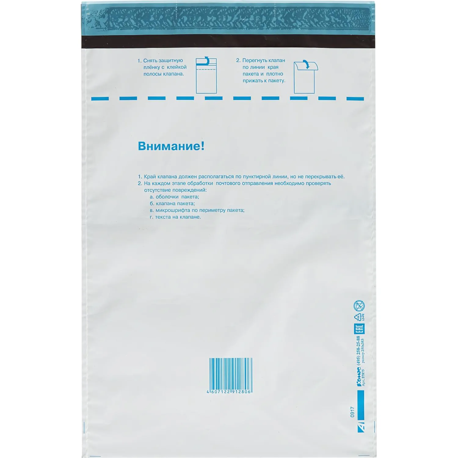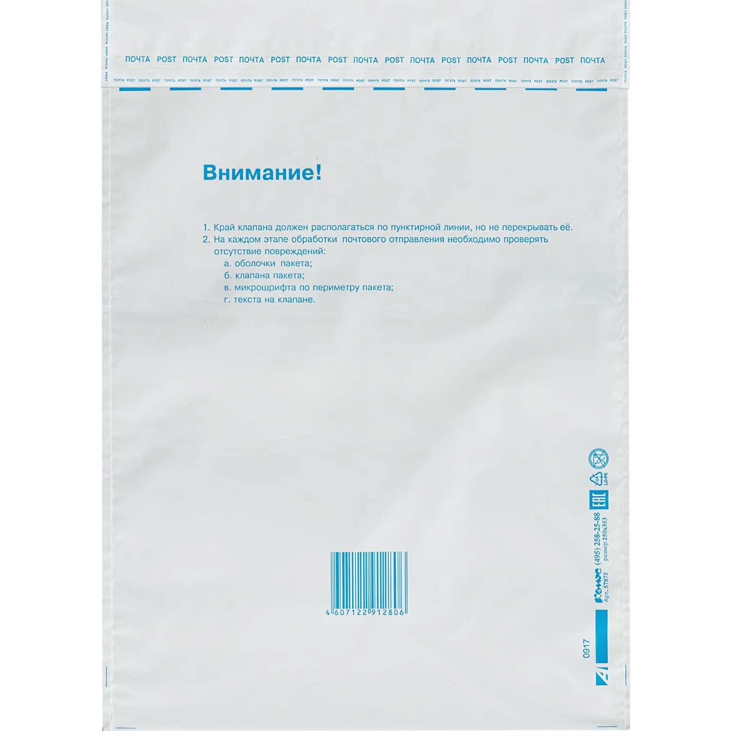 Пакет Amerplast В4 (250×353 мм) из полиэтилена 70 мкм стрип (500 штук в упаковке) изготовлен из трехслойного непрозрачного полиэтилена, имеет почтовый подсказ 'Куда-Кому' и снабжен отрывной клейкой лентой. Толщина 70 микрон. Преимущества:- многослойный полиэтилен высокой прочности защищает вложение от влаги и механических повреждений;- непрозрачность материала исключает возможность определить содержание вложения;- возможность нанесения информации шариковой ручкой;- поверхности определенных зон пакета обеспечивают качество наносимых текстов, оттисков штемпелей и штампов и не допускают их стирания в процессе обработки и транспортировки;- индикаторы, выявляющие любую попытку несанкционированного вскрытия, в том числе прочный специальный шов с нанесенным микротекстом и специальные линии просечек с защитным текстом на клапане. Пакет предназначен для упаковки всех видов почтовых отправлений (писем, бандеролей, мелких посылок) — простых, заказных, с объявленной ценностью, с разрешенным весом вложения до 7 кг. Использование почтовых пакетов из 3-слойного полиэтилена значительно сокращает время упаковки. Упакован в короба 500 штук, обандеролен по 50 штук. Срок хранения не ограничен. Для предотвращения смазывания надписей рекомендуется не использовать письменные инструменты в состав чернил которых входит масло или гель
