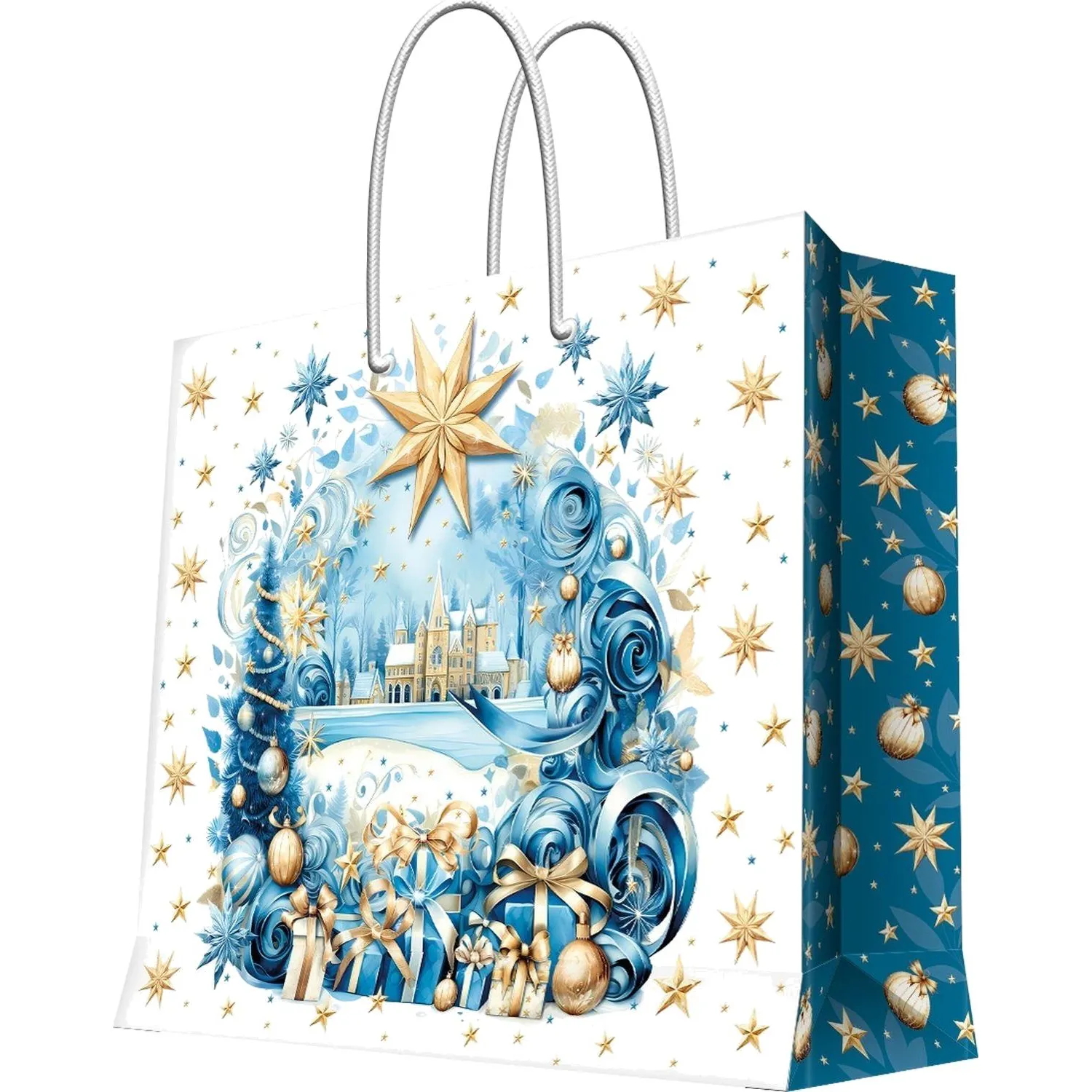 Ламинированный подарочный пакет отличается дизайном и удобными ручками. Он подойдёт для праздничного оформления подарка на Новый год. Можно дополнительно украсить пакет декоративными аксессуарами — ёлочными игрушками и конфетти, чтобы добавить оригинальности. Крепкие петлевые ручки удобно лежат в ладони, равномерно распределяя нагрузку. Пакет изготовлен из бумаги плотностью 157 г/кв. м. Размеры пакета — 33×40.6×16 см. Вес, который выдерживает пакет, может достигать 3.5 кг, поэтому он подойдёт для подарков большого объёма.