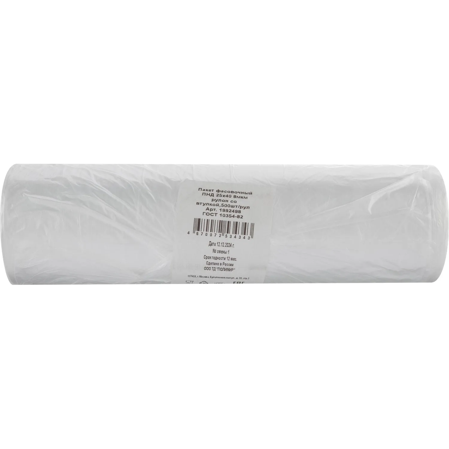 Пакет фасовочный ПНД 25х40, 8 мкм, рулон со втулкой, 500шт/рул