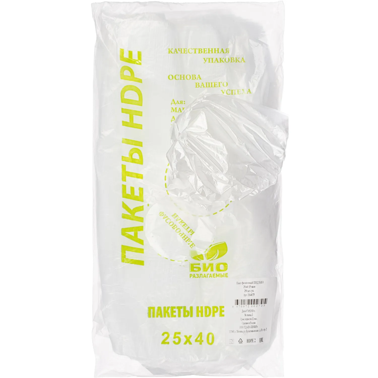 О товаре «Пакет фасовочный ПНД 15 мкм био 25х40 см (250 штук в пласте)»