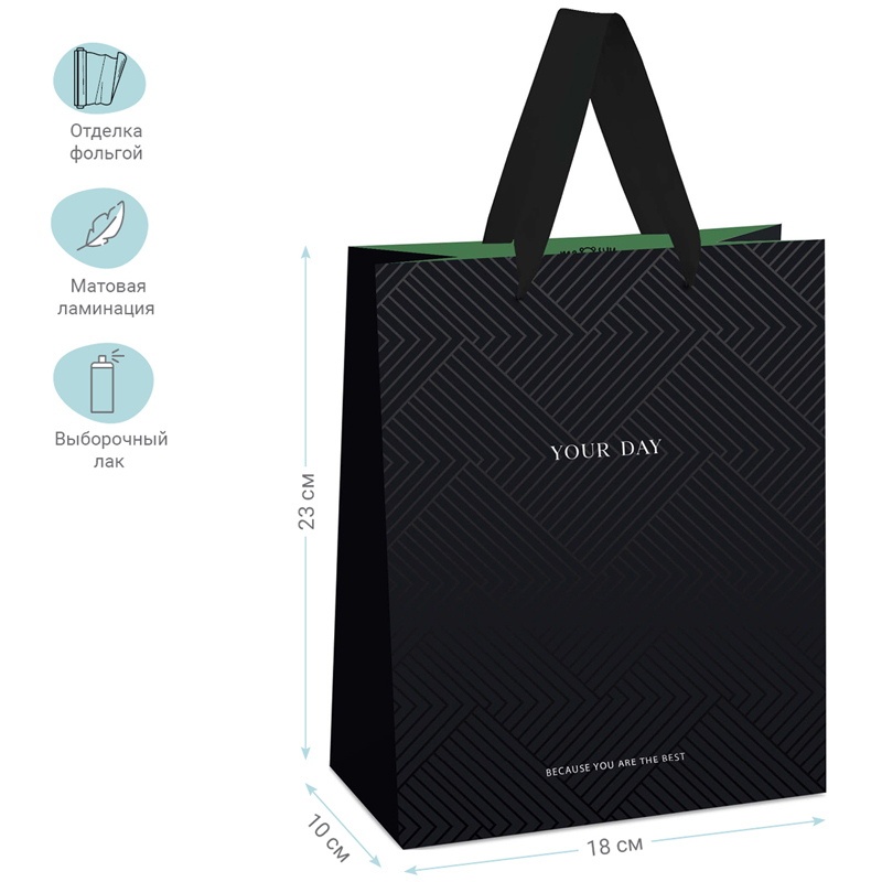 О товаре «Пакет подарочный 18*23*10см MESHU "Black Water", отд. фольгой, выб. лак, матовая ламинация»