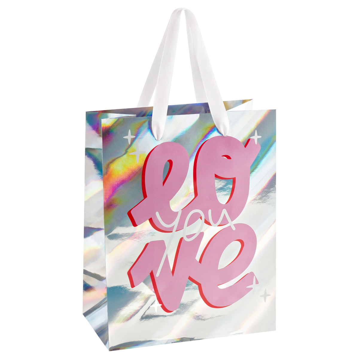 Пакет подарочный 18*23*10см MESHU "Love", голографический картон