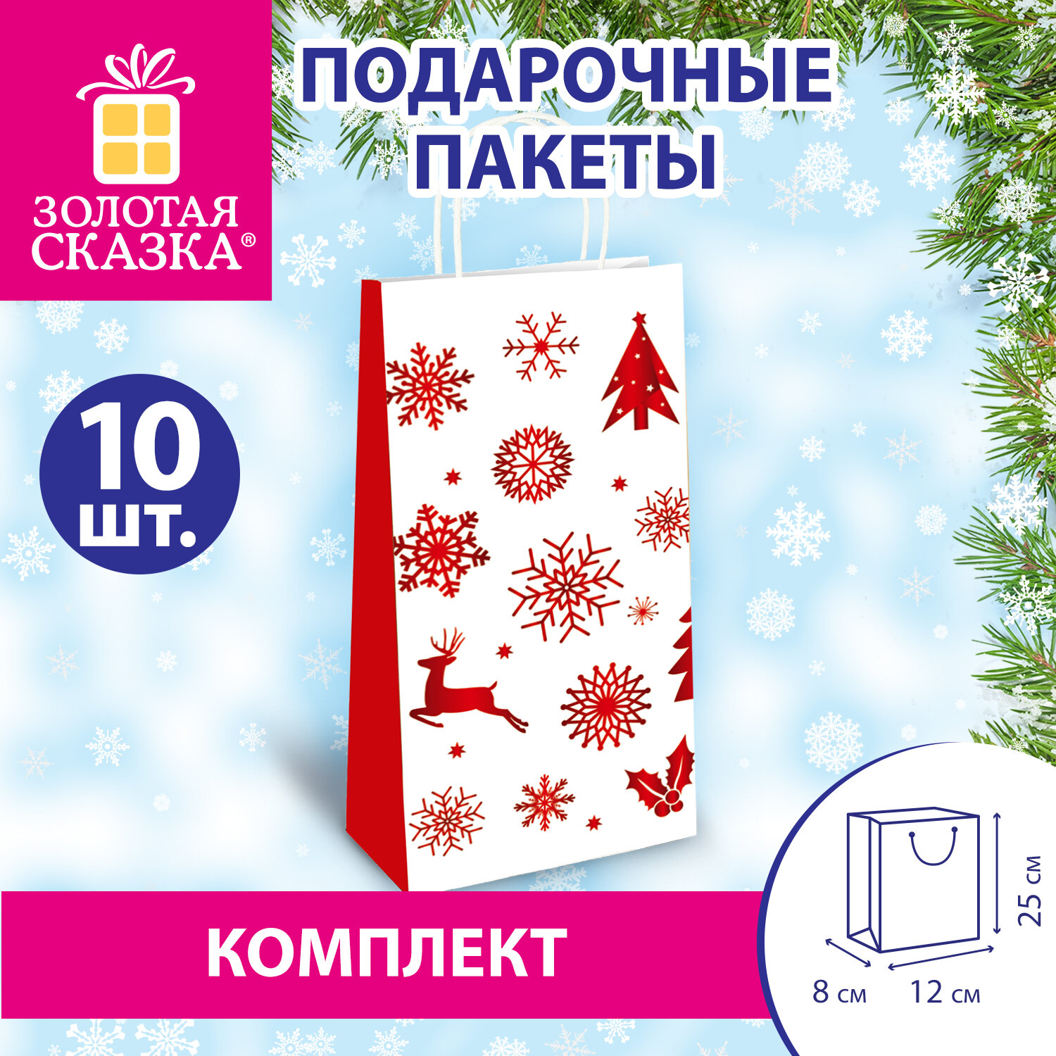 Пакет подарочный КОМПЛЕКТ 10 штук, 12x8x25 см, ЗОЛОТАЯ СКАЗКА, 591964