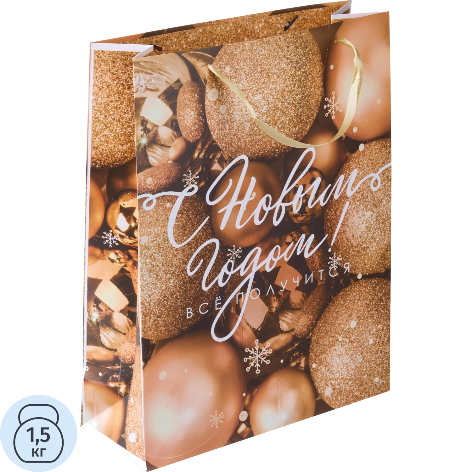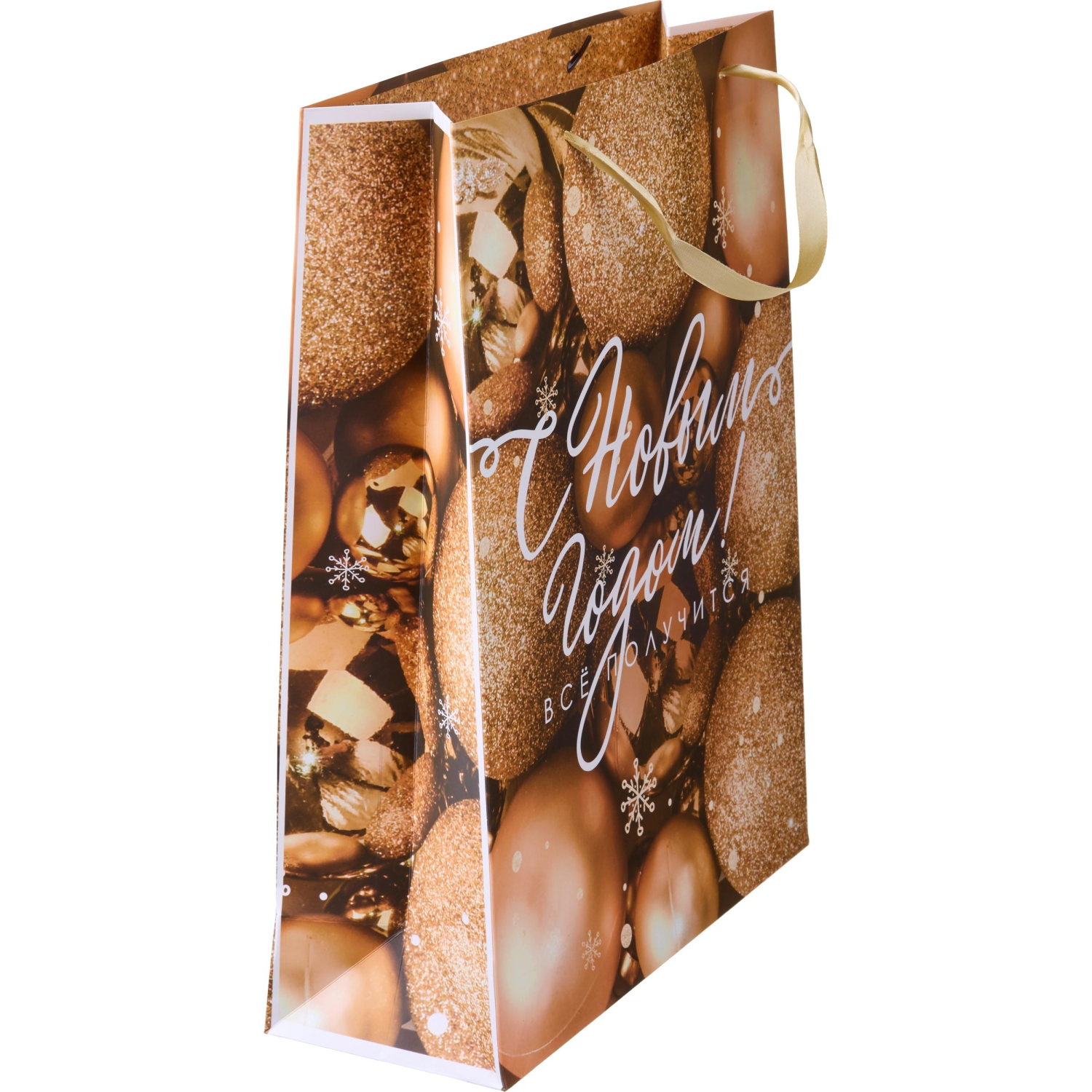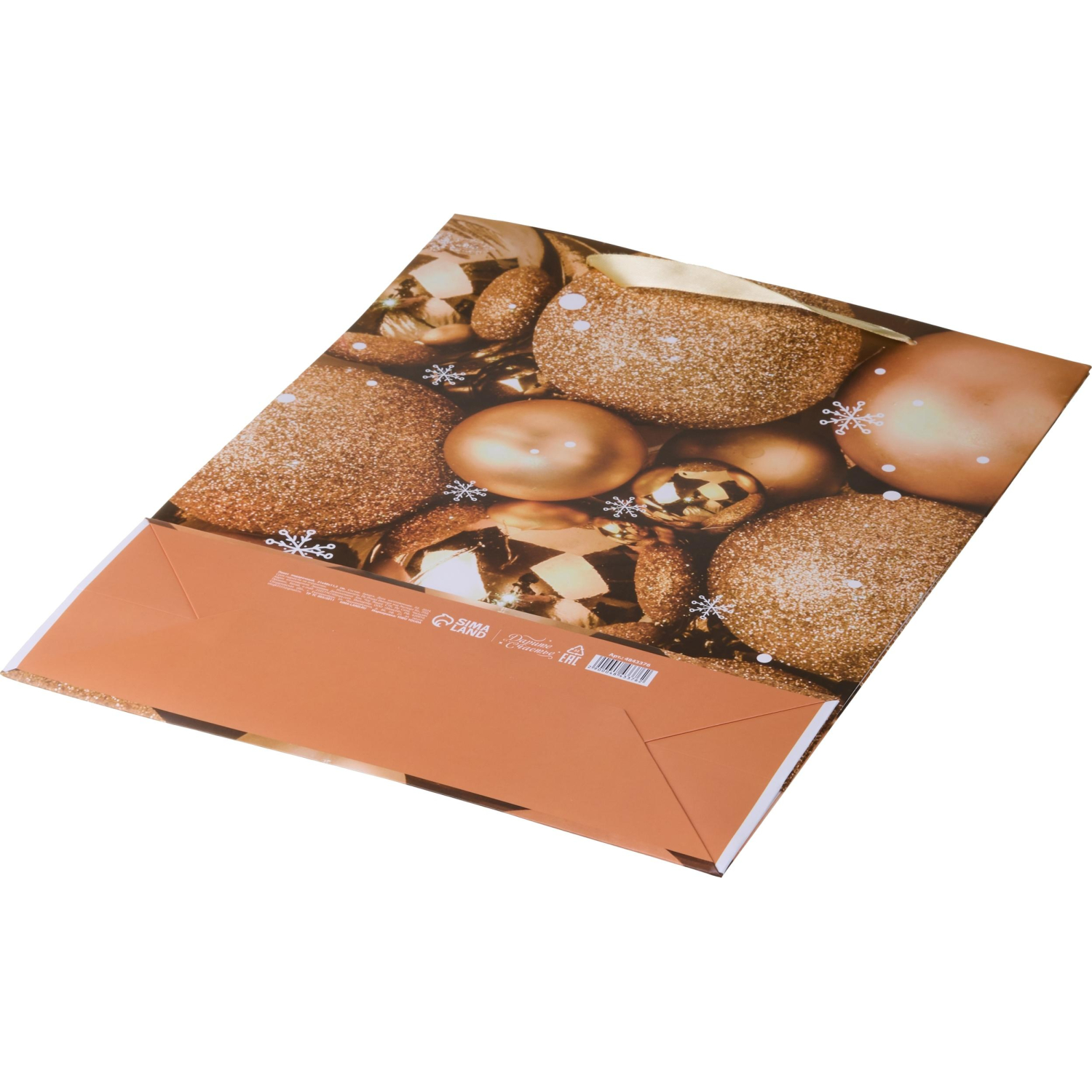 Ламинированный подарочный пакет отличается дизайном и удобными ручками. Он подойдёт для праздничного оформления подарка на Новый год. Можно дополнительно украсить пакет декоративными аксессуарами — ёлочными игрушками и конфетти, чтобы добавить оригинальности. Крепкие петлевые ручки удобно лежат в ладони, равномерно распределяя нагрузку. Пакет изготовлен из бумаги плотностью 190 г/кв. м. Размеры пакета — 40×31×11.5 см. Вес, который выдерживает пакет, может достигать 1.5 кг, поэтому он подойдёт для подарков большого объёма.