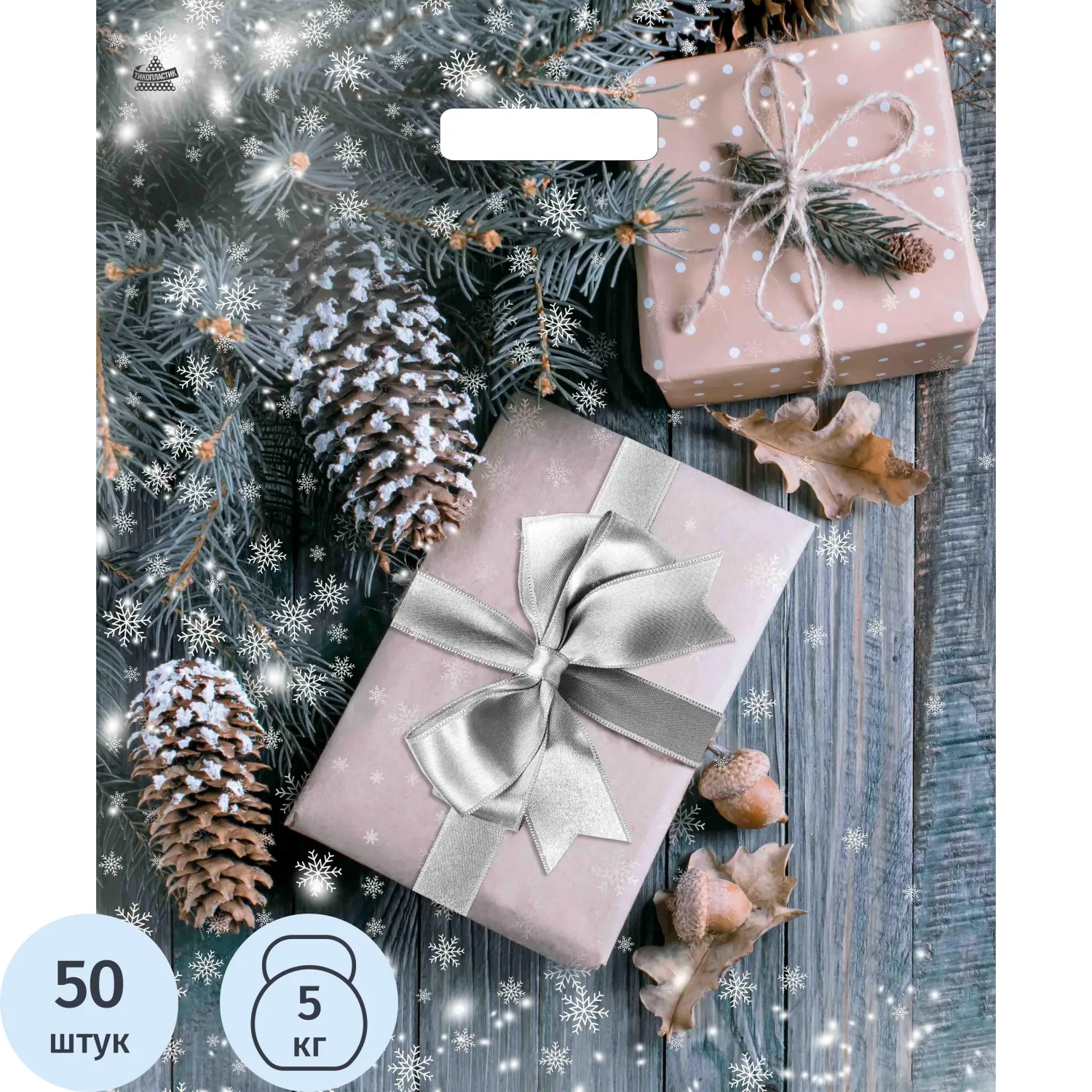 Пакет подарочный ламинированный Тикопластик Новогодние подарки (45×38×1 см, 50 штук в упаковке)