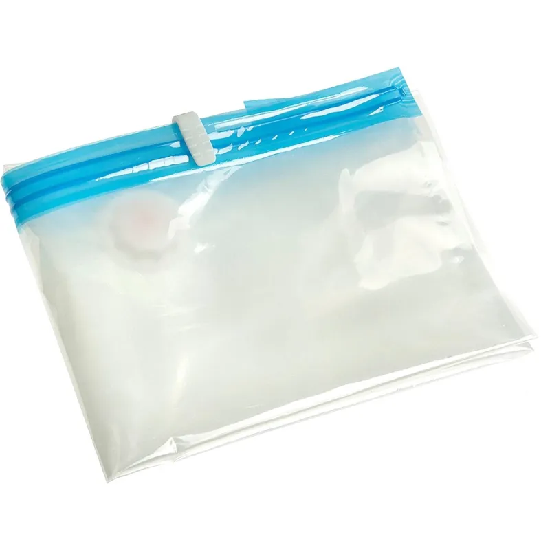 Удобная застёжка zip-lock со специальным зажимом надёжно закрывает пакет, не позволяя воздуху попасть внутрь. Пакет не только позволяет экономить до 70% объёма, но и защищает вещи от влаги, пыли, запаха и насекомых. Прозрачный материал поможет быстро определить содержимое.