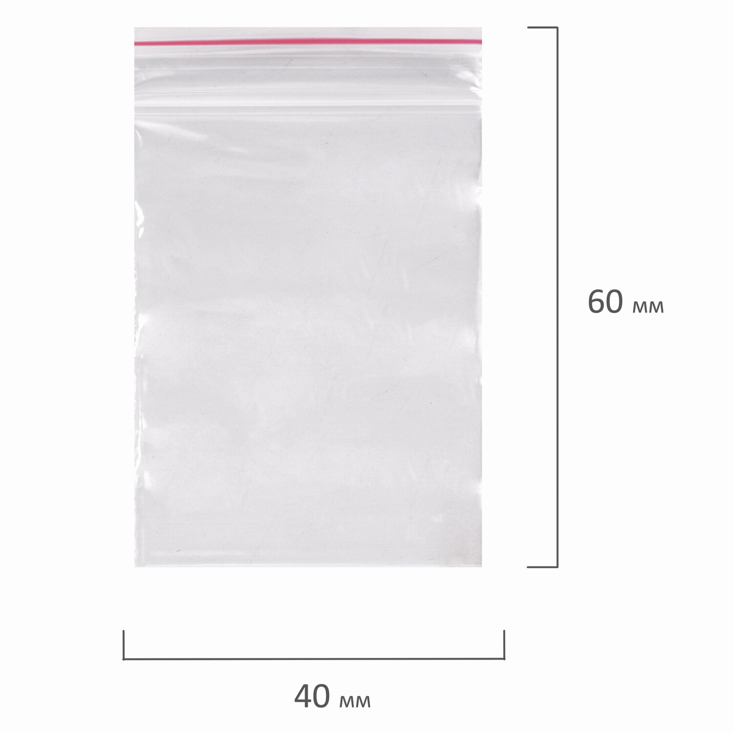 Пакеты с замком ZIP LOCK "зиплок", комплект 100 шт., 40х60 мм, ПВД, толщина 35 микрон, BRAUBERG, 606206