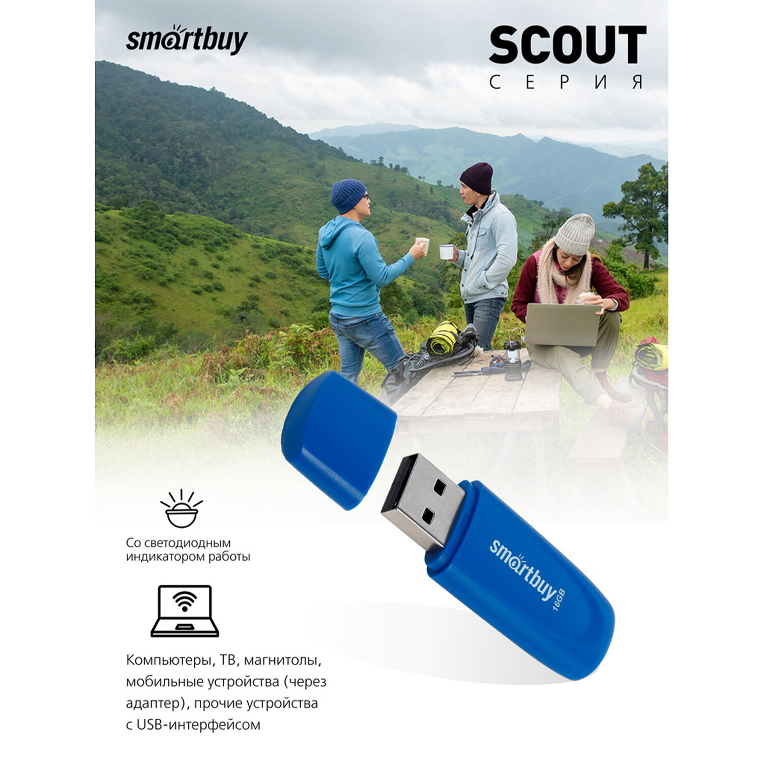 О товаре «Флеш-диск 16 GB SMARTBUY Scout USB 2.0, синий, SB016GB2SCB»
