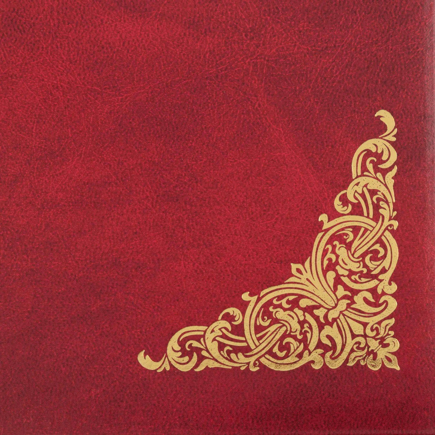 Папка адресная Поздравляем А4 балакрон бордовая. Адресная папка формата А4 бордового цвета. Материал обложки — балакрон. На лицевой стороне расположены золотистая надпись и декоративные виньетки по углам, выполненные методом тиснения. Внутри бумажные вклейки. Папка для поздравлений предназначена для проведения торжественных церемоний, вручения наград, благодарностей и почетных грамот, для оформления приветственных речей. Благодаря своему дизайну она подойдет для использования на свадьбах, днях рождения, мероприятиях в библиотеках, театрах, школах, университетах и других организациях. Она поможет сохранить аккуратный вид содержимого и подчеркнет статус и торжественность. На данный товар можно нанести логотип.