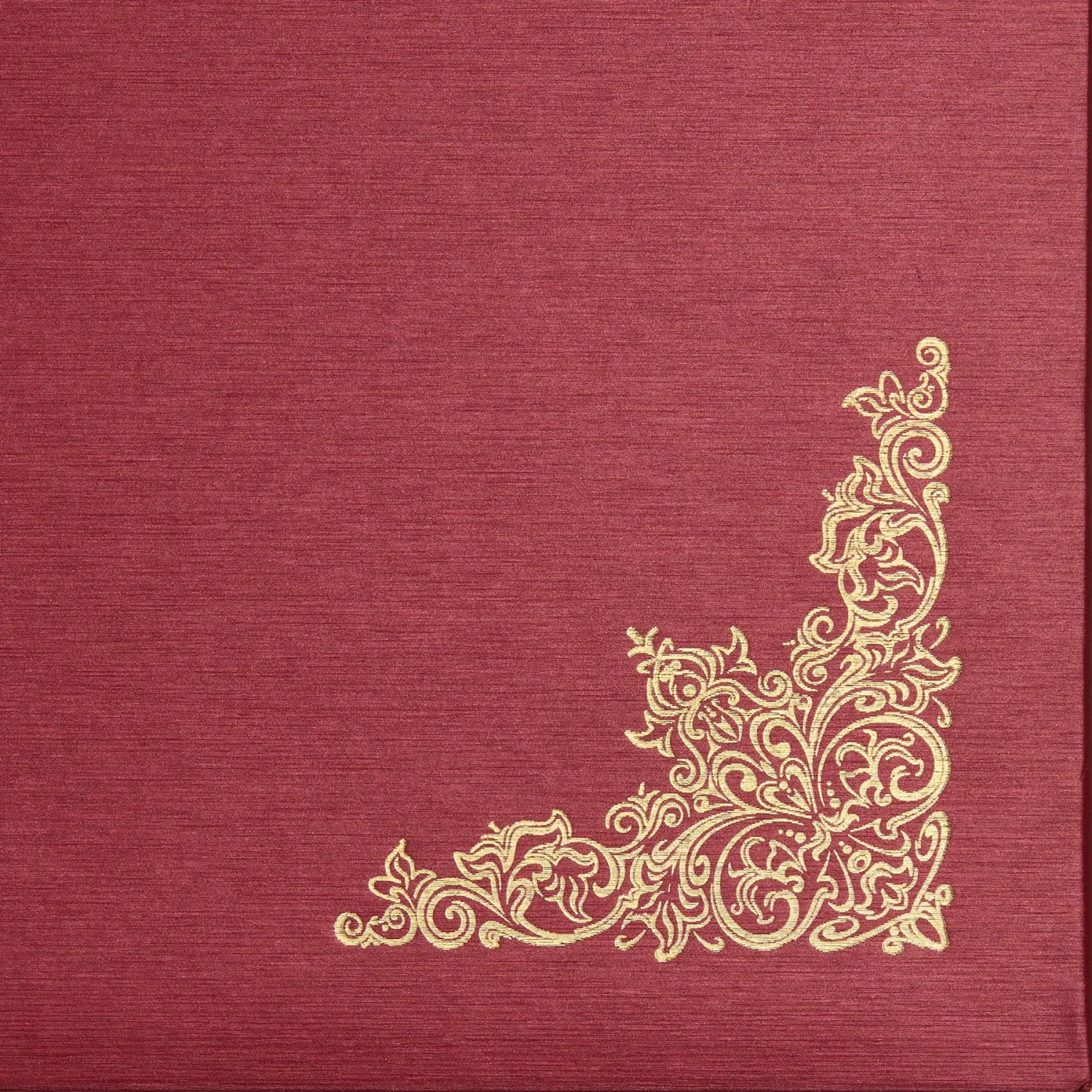 Папка адресная А4 балакрон красная. Адресная папка формата А4 выполнена из балакрона (ПВХ с имитацией кожи) красного цвета. На обложку с помощью тиснения золотой фольгой нанесен орнамент (виньетка). Внутри есть фиксирующая лента для удержания документов. Папка предназначена для подачи документов на подпись и для проведения торжественных церемоний, для вручения наград, благодарностей и почетных грамот, для оформления поздравлений и приветственных речей. Благодаря дизайну она подойдет для использования в государственных учреждениях, ведомствах и офисах. На папку можно нанести логотип.