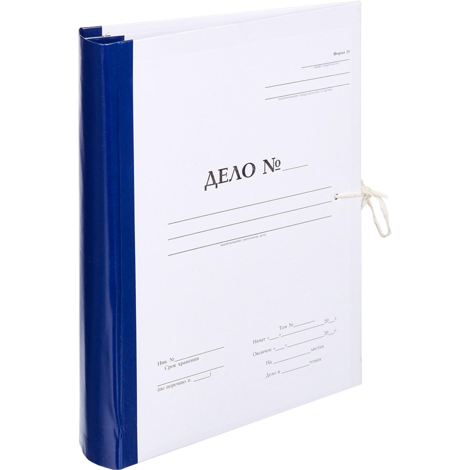 Архивная папка на завязках ’Дело № ’ выполнена из плотного картона, покрытого офсетной бумагой. Корешок черного цвета шириной 7 см изготовлен из бумвинила (слой ПВХ на бумажной основе). Количество завязок — две. Внутренние гребешки с 8 отверстиями позволяют подшивать документы с помощью тесьмы или механизма-скоросшивателя. Папка на завязках вмещает до 500 листов стандартной плотности. Внешний размер — 228×70×310 мм. Внутренний размер — 224×68×310 мм. Плотность картона у папки составляет 120г/м2.