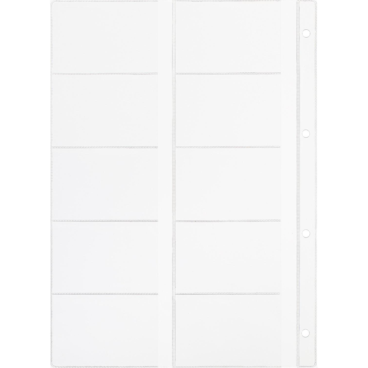 Файл вкладыш для визиток. Изготовлен из ПВХ. Плотность 120 мкм. Формат А4. Размер 210×295 мм. Файл односторонний с 10 карманами. Вместимость до 20 карточек. В упаковке содержится 10 файлов.