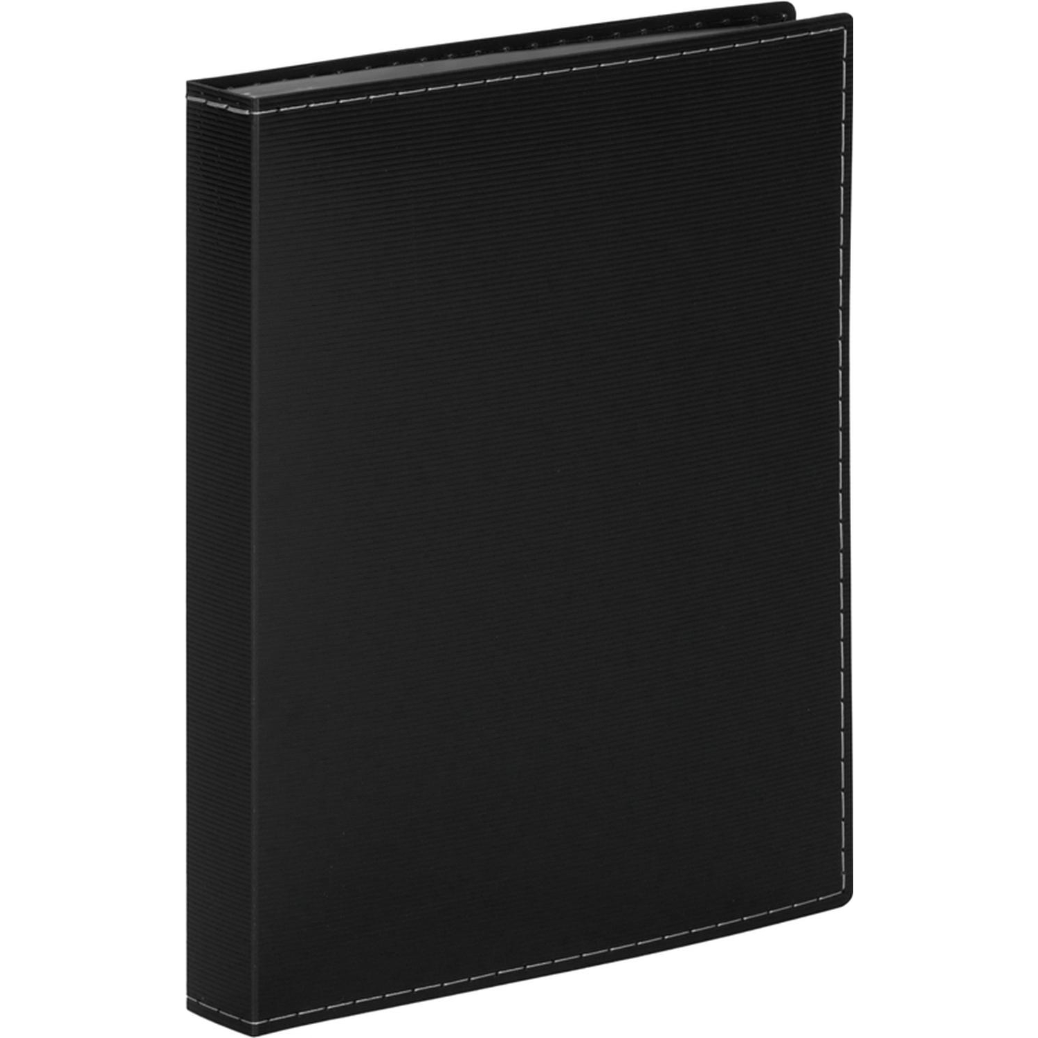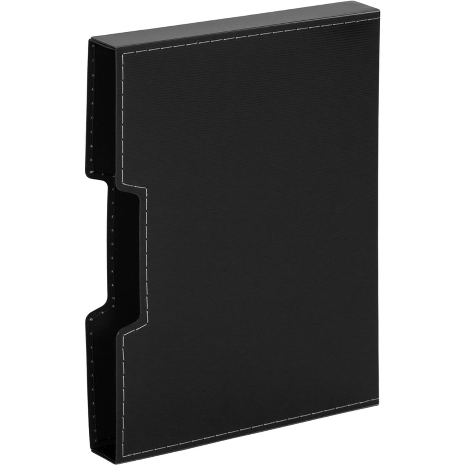 Удобная и практичная файловая папка формата А4 изготовлена из жесткого полипропилена черного цвета толщиной 1 мм. Имеет 80 несъемных прозрачных вкладышей, в каждый из которых можно вложить до двух листов. Подходит для хранения и демонстрации документов на презентациях, совещаниях, создания портфолио. Папка с файлами вложена в пластиковый бокс, который позволяет ставить ее на стол. В боксе предусмотрены выемки для легкого извлечения папки. Оба предмета декорированы окантовкой в виде прострочки. Плотность файлов 35 мкм.