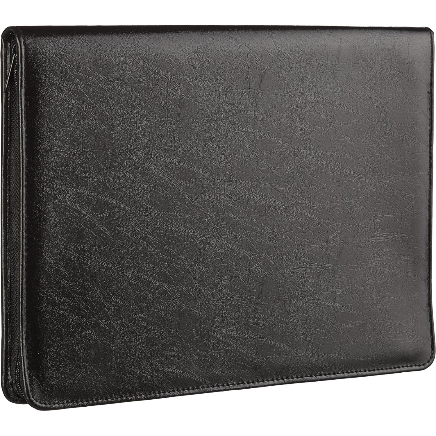 Обновленный вариант папки Лидер. Материал — искусственная кожа. Закрывается на молнию. Объемный карман для документов, дополнительные карманы для документов разного формата. Металлический прижим для бумаг. Комплектуется отрывным блоком для записей формата А4. Размеры: 34×22 см. В комплекте к данной папке не прилагается пишущая ручка.