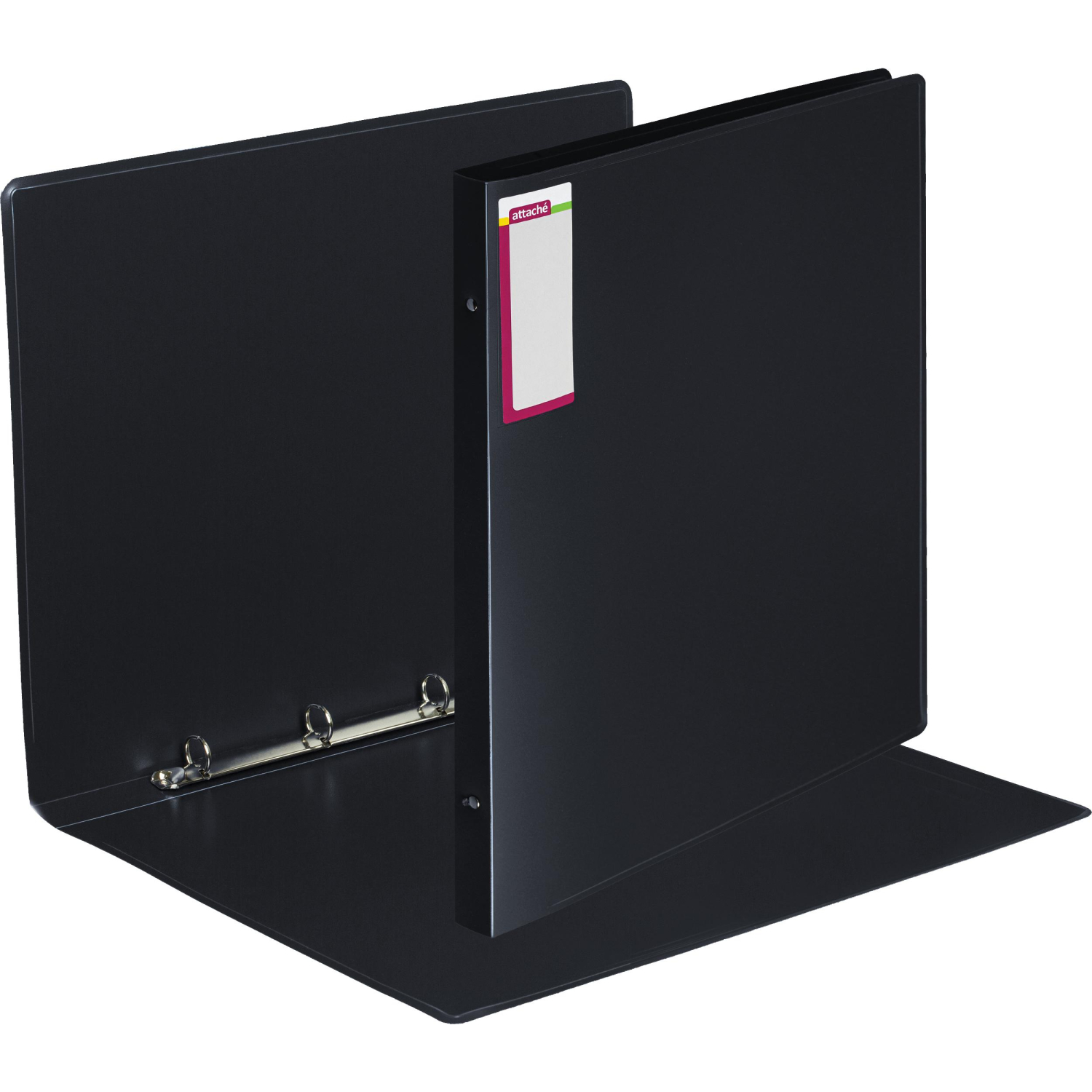 Папки на кольцах рекомендуются как для временного, так и длительного хранения, систематизации, архивирования документов. Используются в работе офисными сотрудниками различных специальностей, направлений, должностей. Также их можно использовать для хранения документов дома. Папка на четырех кольцах Attache изготовлена из жесткого пластика толщиной 0,8 мм черного цвета. Формат А3, вертикальная. Снабжена механизмом на O-кольцах диаметром 25 мм. Ширина корешка составляет 32 мм. На обложке есть наклейка для маркировки. Папка на кольцах формата А3 вмещает до 200 листов стандартной плотности.