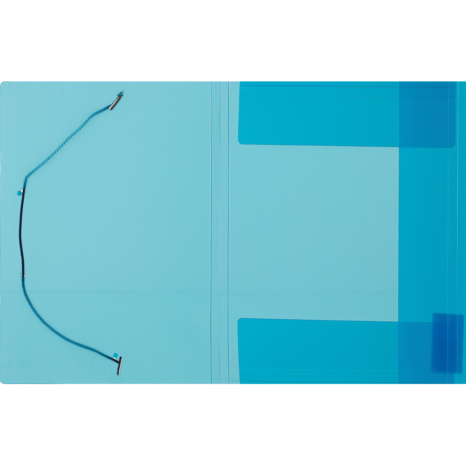 Папка на резинках Attache формата А5 изготовлена из полупрозрачного пластика синего цвета, толщиной 0,6 мм. Имеет три внутренних клапана, закрывается с помощью двух угловых резинок. Ширина корешка — 15 мм. Для удобного хранения и транспортировки документов. Вмещает до 100 листов.