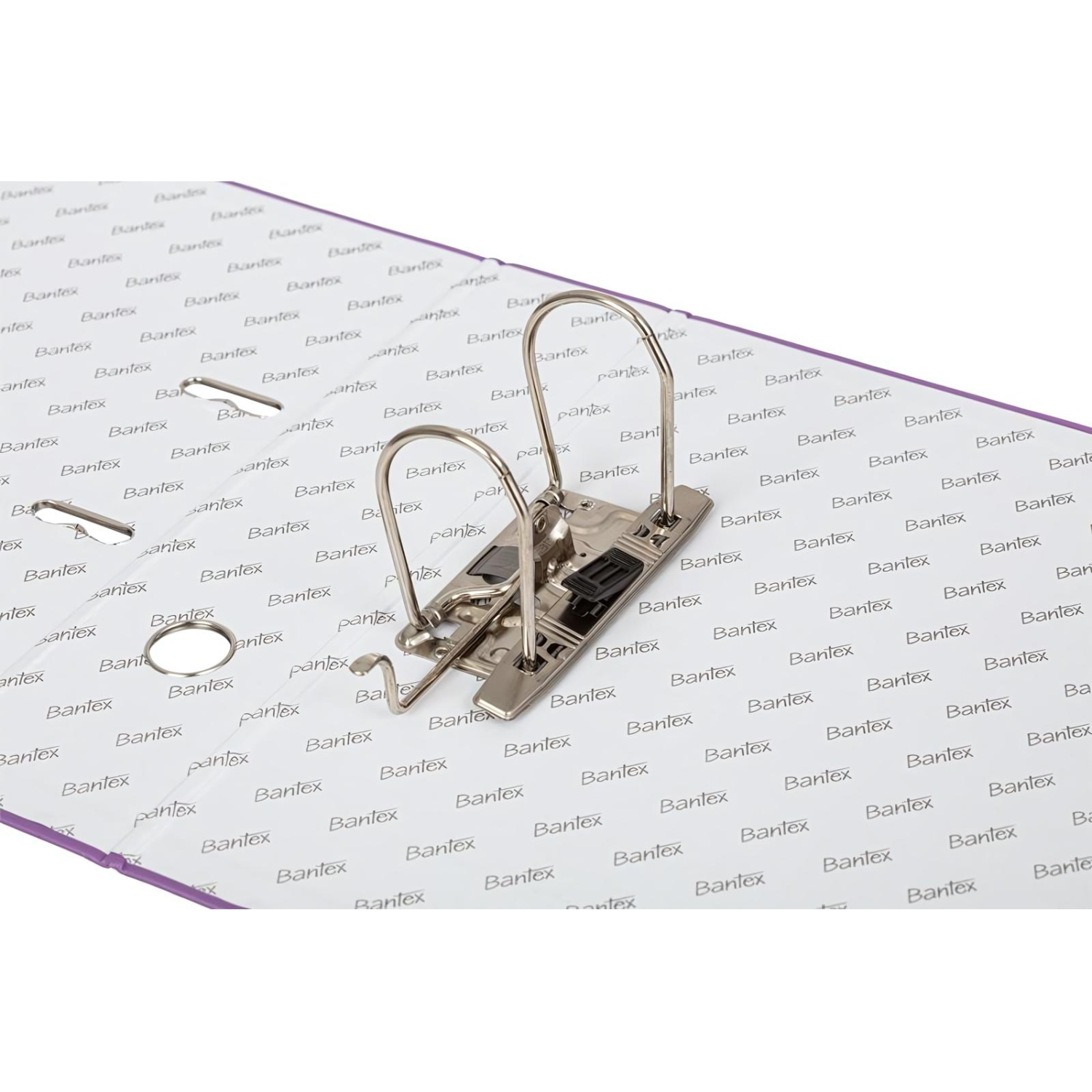 Папка-регистратор Bantex (Attache Selection) из коллекции Economy Plus изготовлена из прочного картона толщиной 1,9 мм, покрытого с внешней стороны фиолетовым бумвинилом, а с внутренней — бумагой с печатью Bantex. Формат А4+, папка ориентирована вертикально. Вмещает до 600 листов стандартной плотности. Оснащена арочным механизмом, произведенным в Чехии. На корешке шириной 80 мм есть карман со сменной этикеткой и круглое кольцо для удобного захвата. Овальные кольца на верхней крышке удерживают папку закрытой даже при большом количестве документов. Нижние края папки защищены металлическим кантом. Цветовая гамма включает 11 цветов.