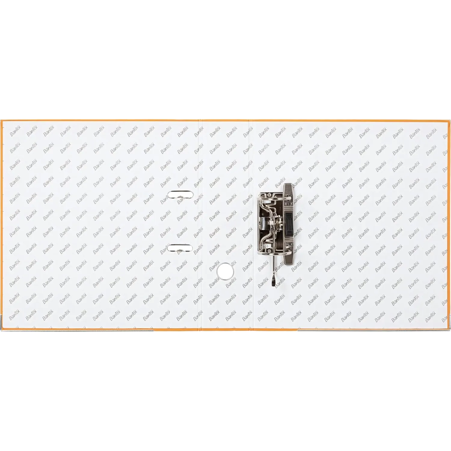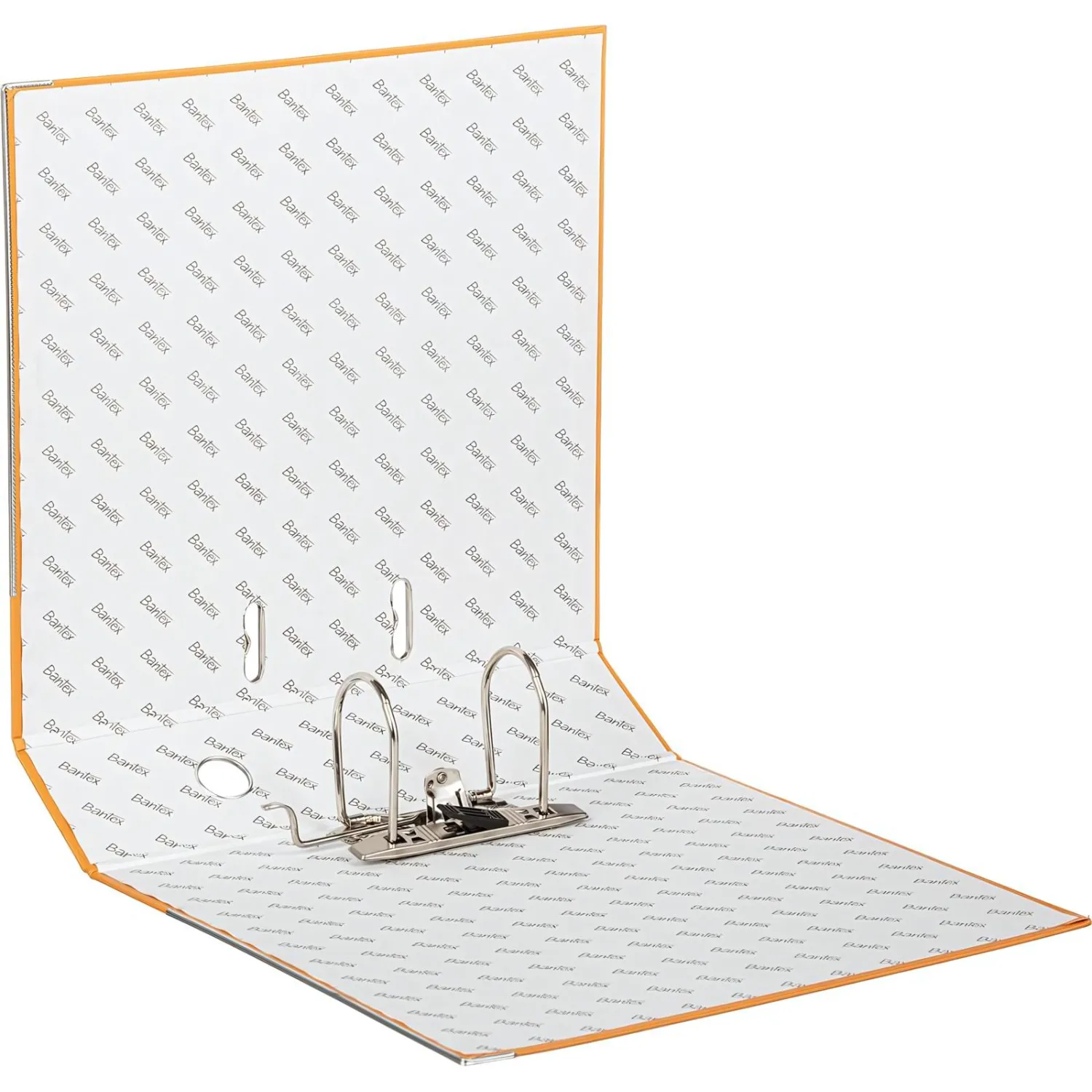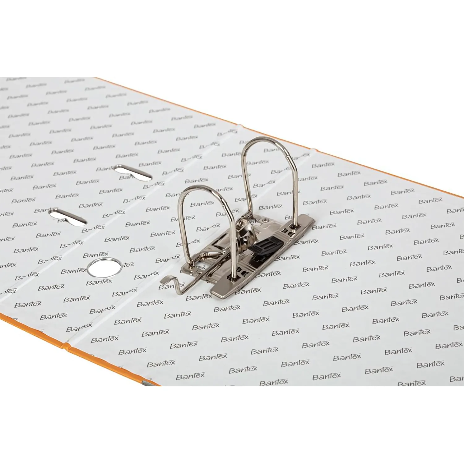 Папка-регистратор Bantex (Attache Selection) из коллекции Economy Plus изготовлена из прочного картона толщиной 1,9 мм, покрытого с внешней стороны оранжевым бумвинилом, а с внутренней — бумагой с печатью Bantex. Формат А4+, папка ориентирована вертикально. Вмещает до 600 листов стандартной плотности. Оснащена арочным механизмом, произведенным в Чехии. На корешке шириной 80 мм есть карман со сменной этикеткой и круглое кольцо для удобного захвата. Овальные кольца на верхней крышке удерживают папку закрытой даже при большом количестве документов. Нижние края папки защищены металлическим кантом. Цветовая гамма включает 11 цветов.