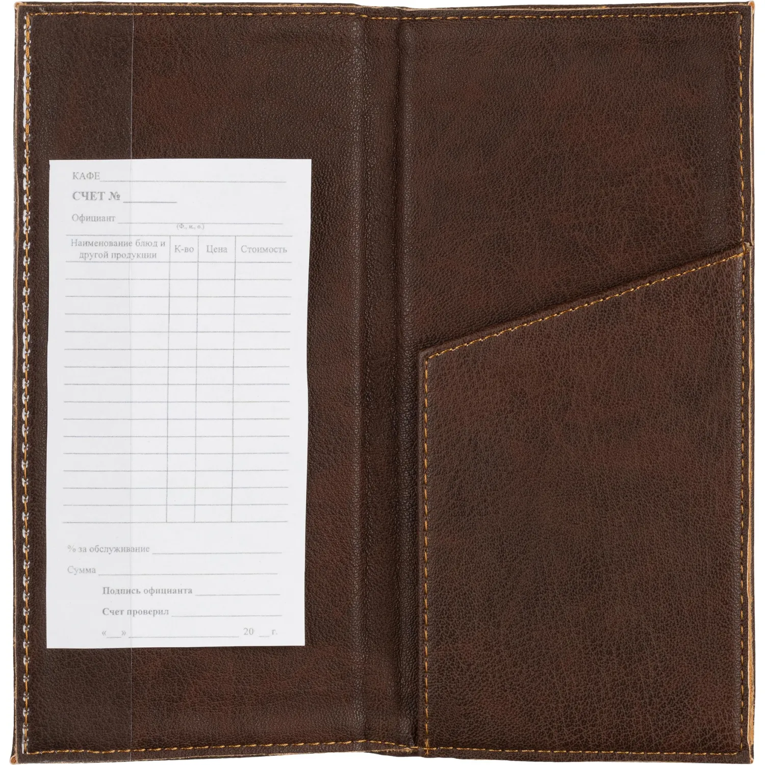 Папка для счета 110х230 мм, искуственная кожа коричневая