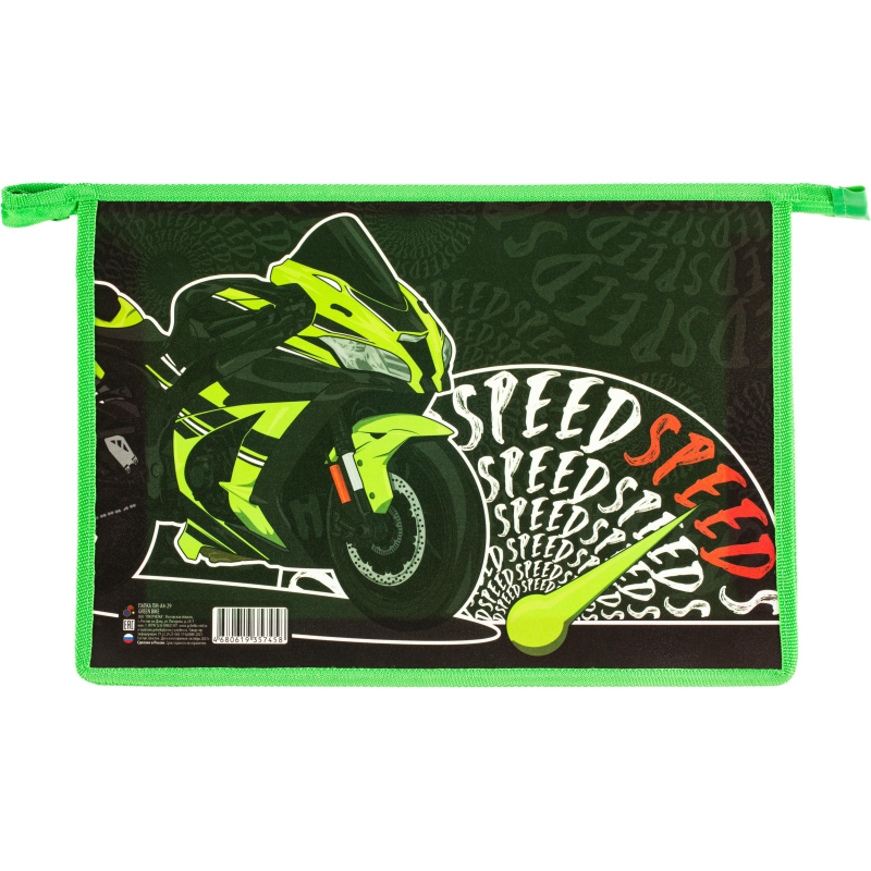 Папка для тетрадей Green Bike А4 с 1 отделением на молнии