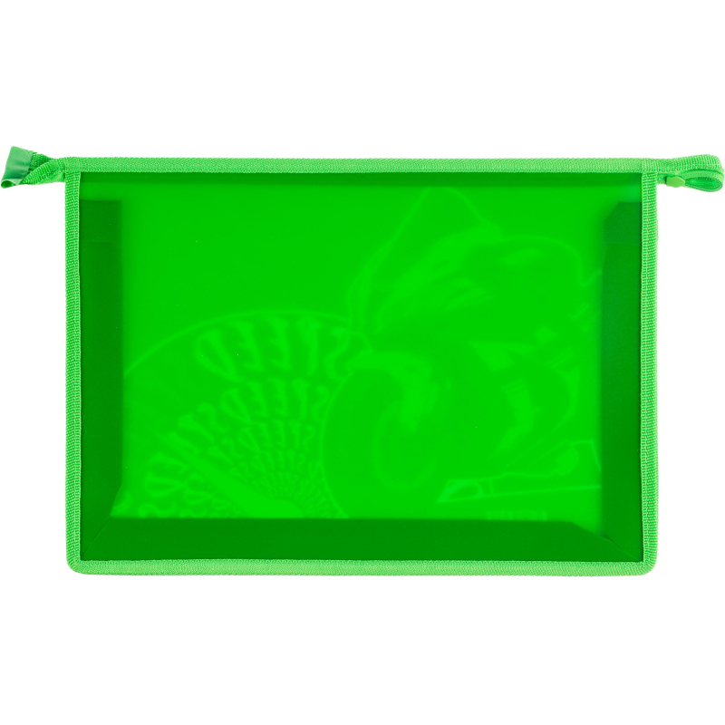 Папка для тетрадей формата А4 изготовлена из прочного пластика и оснащена молнией сверху, которая надёжно фиксирует содержимое. Внутри предусмотрено одно отделение для тетрадей и других школьных принадлежностей.