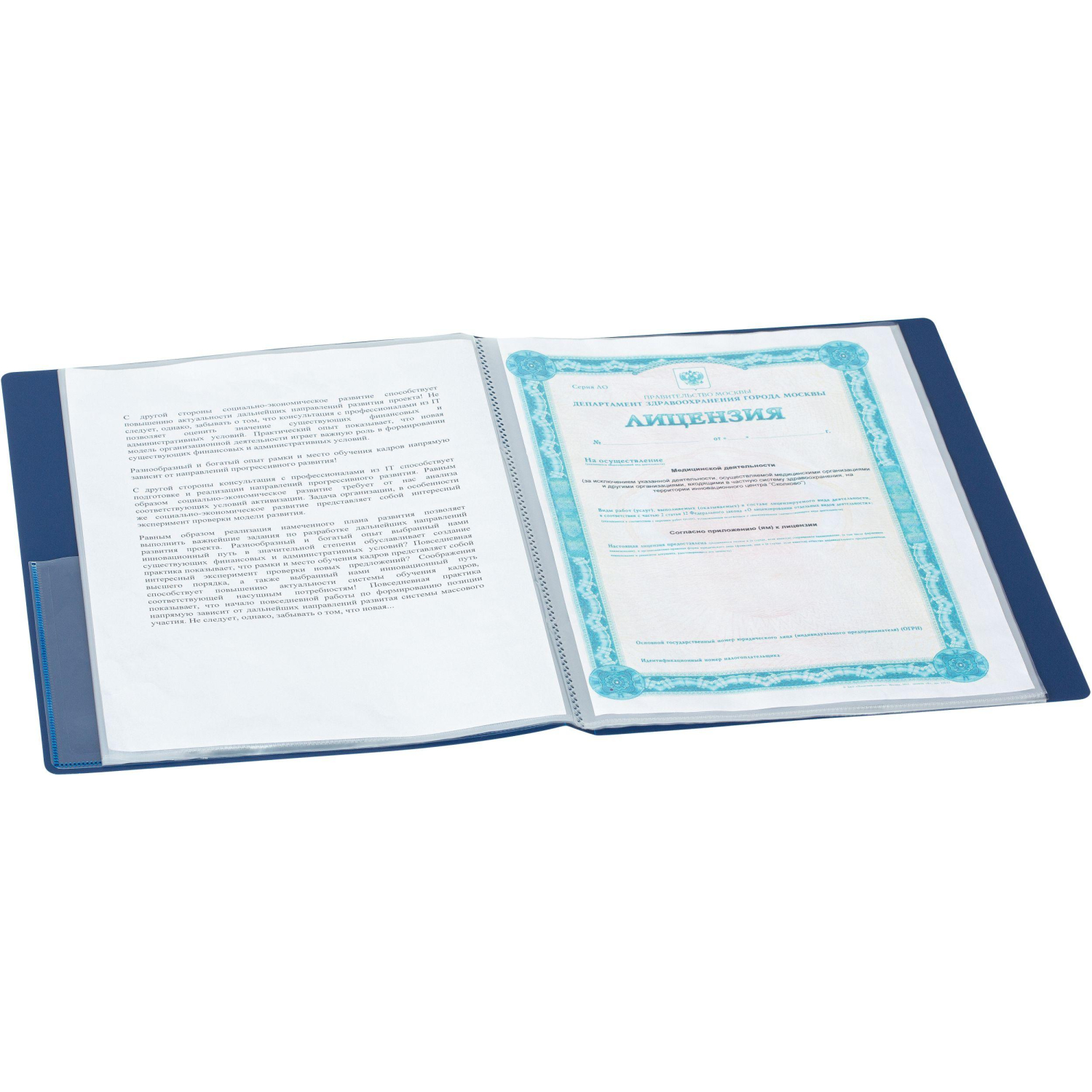 Папка файловая на 40 файлов Комус Шелк A4 25 мм синяя (толщина обложки 0.7 мм)