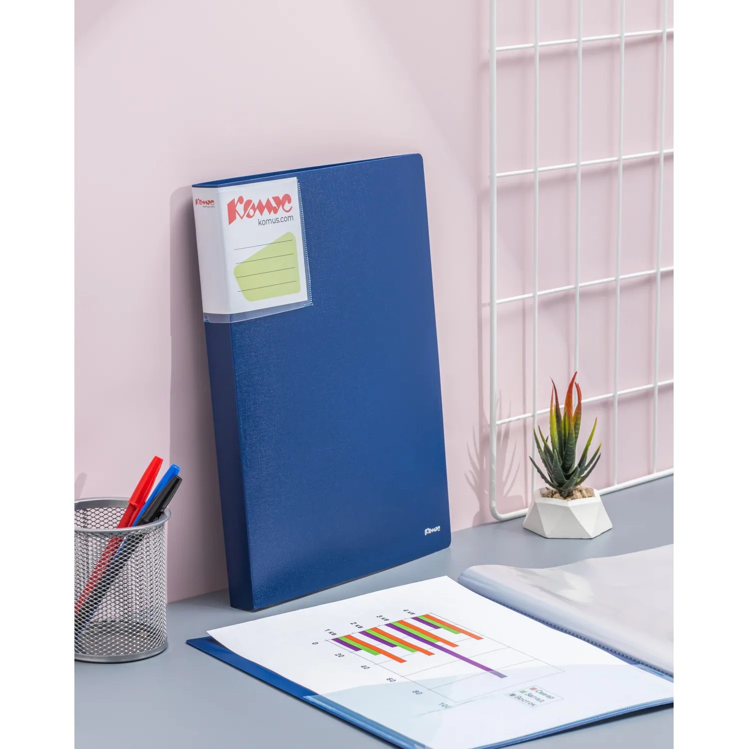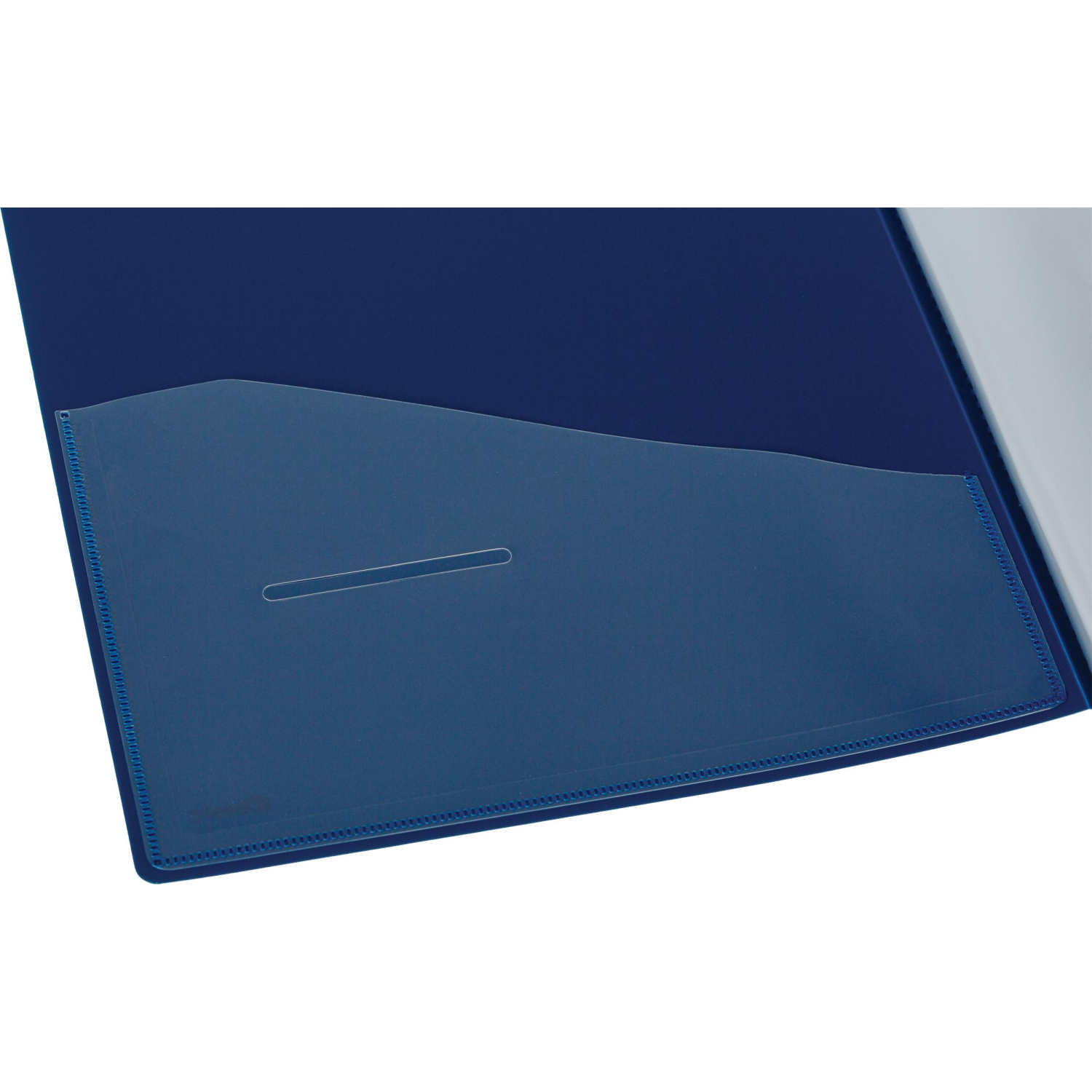 Папка с файлами Комус из коллекции ’Шелк’ выполнена из пластика синего цвета толщиной 0,7 мм. Имеет 40 прозрачных файлов для хранения и демонстрации документов. На корешке предусмотрен прозрачный карман с вкладышем для маркировки, на внутренней стороне створки — дополнительный карман для записок, сим-карт, компакт-дисков. Файловая папка вмещает до 80 листов формата А4.