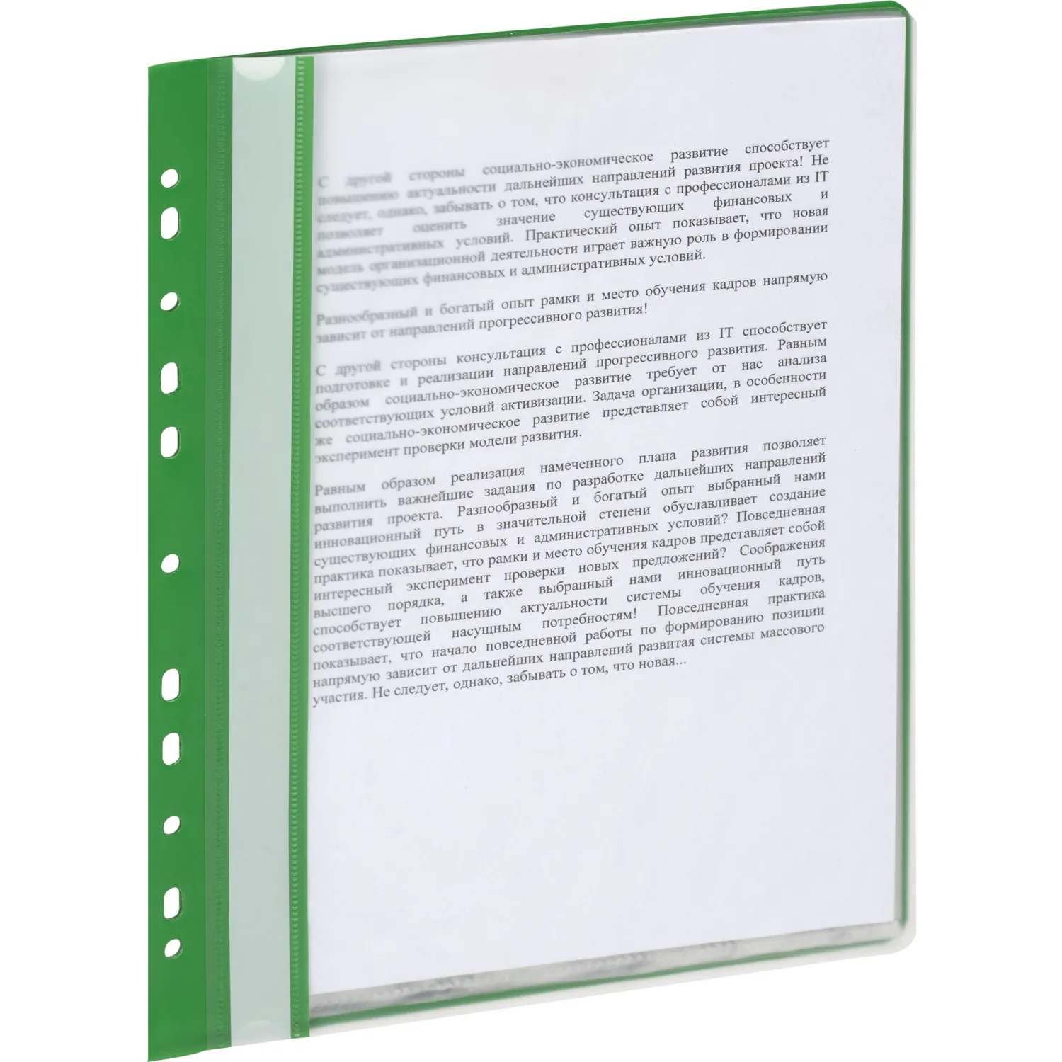 Папка-скоросшиватель с прозрачным верхним листом формата А4. Для хранения документов. Боковая перфорация позволяет подшивать скоросшиватель в папки-регистраторы и папки на кольцах. Плотность файлов 30 мкм.
