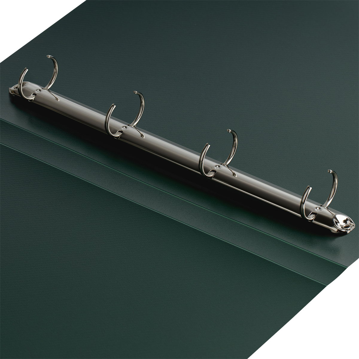 Папка на четырёх кольцах «СТАММ» серии «Диагональ» предназначена для сшивания и хранения документов формата А4. Внешняя сторона папки дополнена фактурным тиснением «Диагональ», которое защищает изделие от загрязнений и повреждений. Цвет — изумруд. Папка изготовлена из качественного полипропилена толщиной 700 мкм. Размер папки — 310*250 мм. Кольцевой механизм, состоящий из четырёх колец диаметром 25 мм, надёжно держит документы. Ширина корешка — 40 мм, что позволяет вмещать до 250 листов. Папка подходит для хранения как перфорированных документов, так и папок-вкладышей с универсальной перфорацией. Папка упакована в индивидуальный пакет. Изготовлена в России.