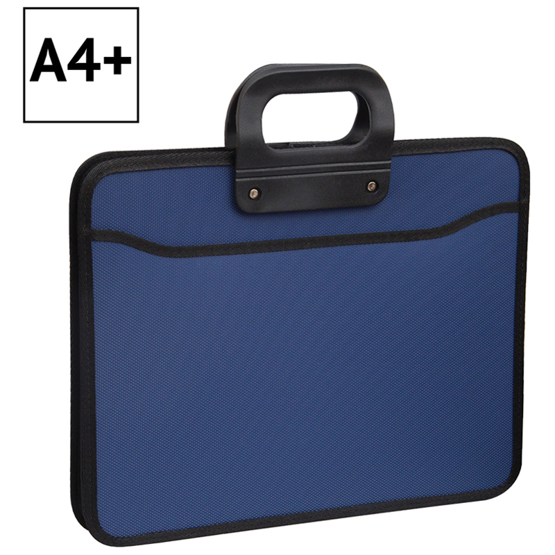 Папка-портфель 3 отделения OfficeSpace, А4+, 390*315*120мм, на молнии, синий. Предназначен для транспортировки документов, бумаг и различных предметов. Увеличенный размер позволяет размещать документы и папки А4 форматов. Портфель содержит два внутренних отделения, закрывающихся на молнию, и одно внешнее. Внутри портфеля есть четыре кармана-сетки и два тканевых кармана для мелких предметов. Надежные усиленные пластиковые ручки. Максимальное расширение портфеля составляет 120 мм. Цвет синий. Индивидуальная упаковка в пакет.
