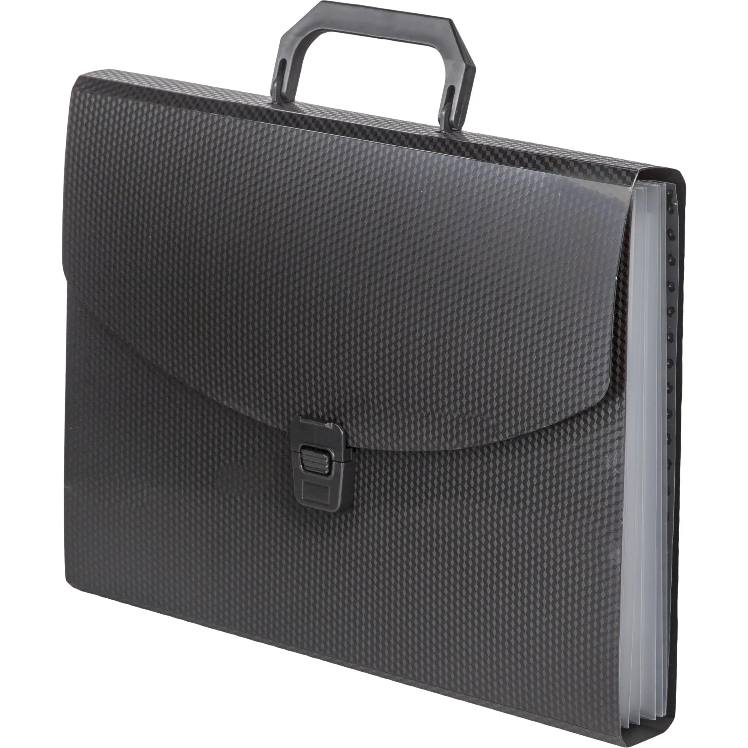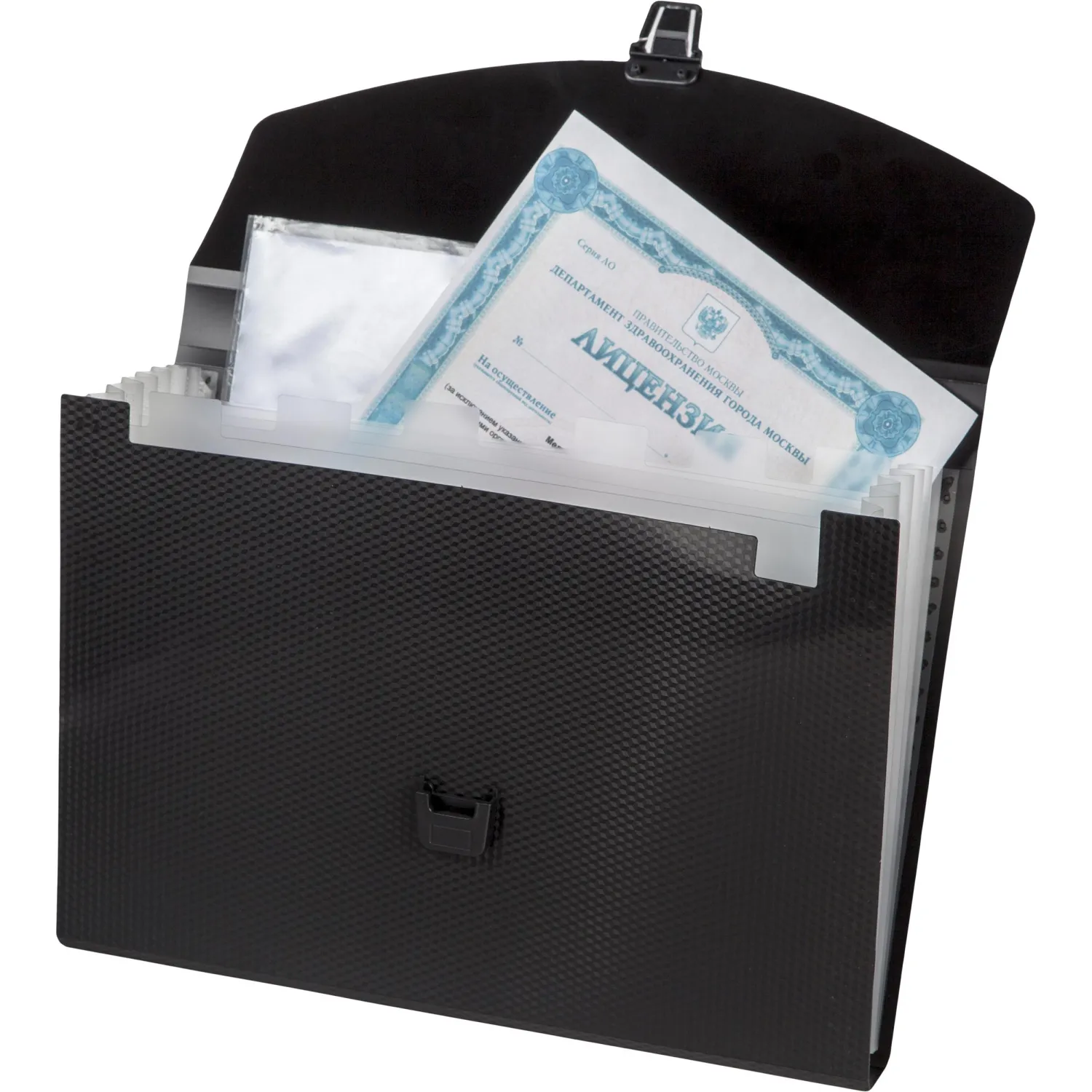Папка-портфель пластиковая Комус A4 черная (34х4х24 см, 6 отделений)