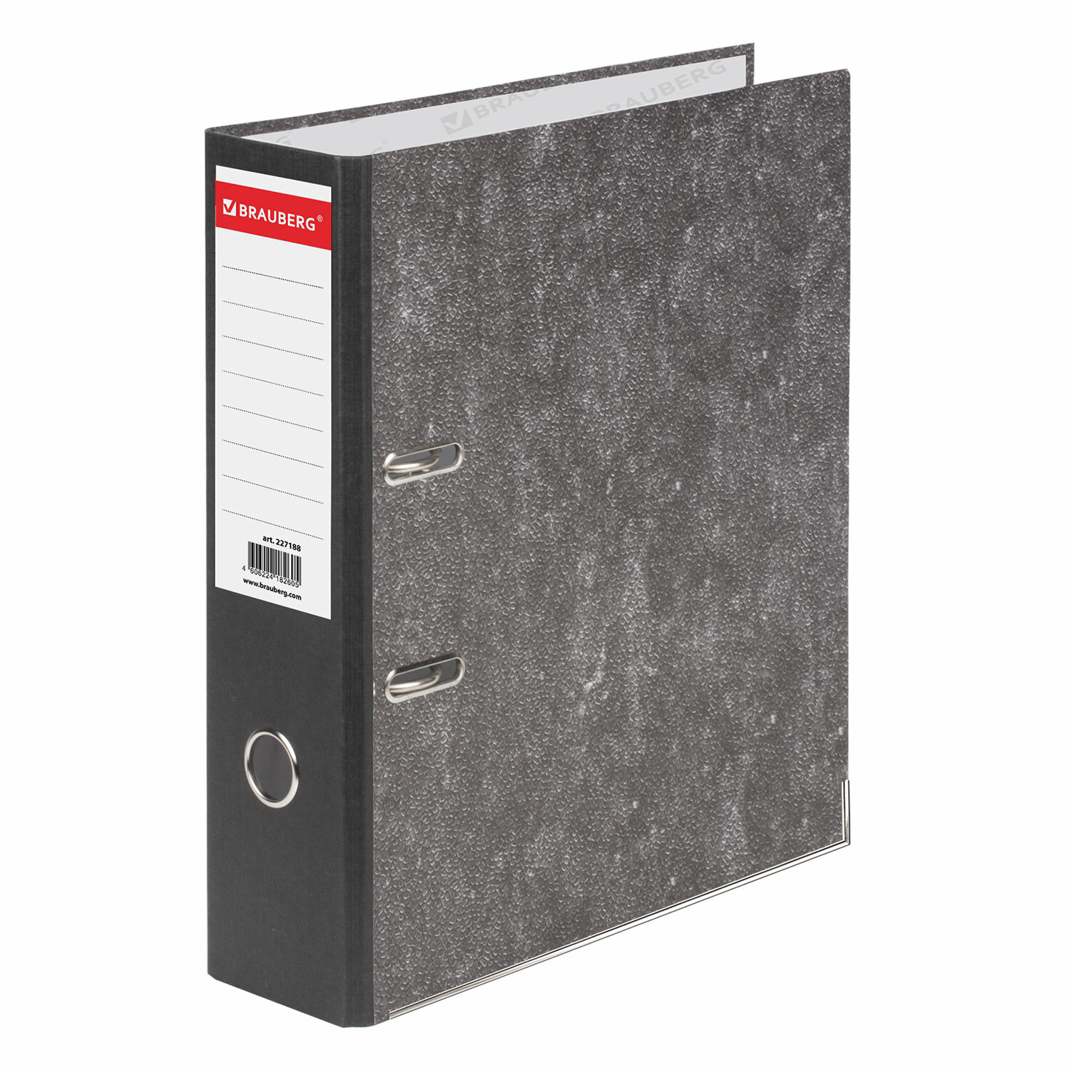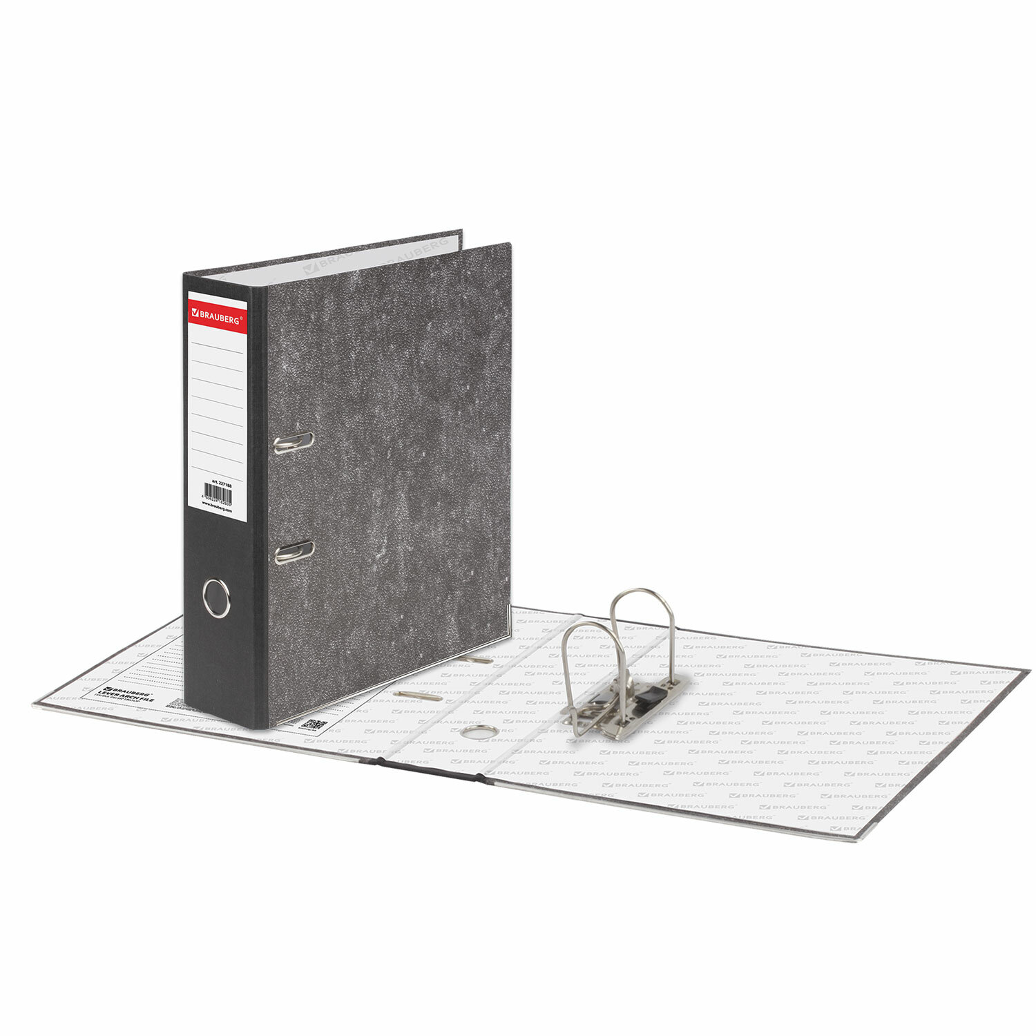 Папка-регистратор BRAUBERG, усиленный корешок, мраморное покрытие, 80 мм, с уголком, черная, 227188