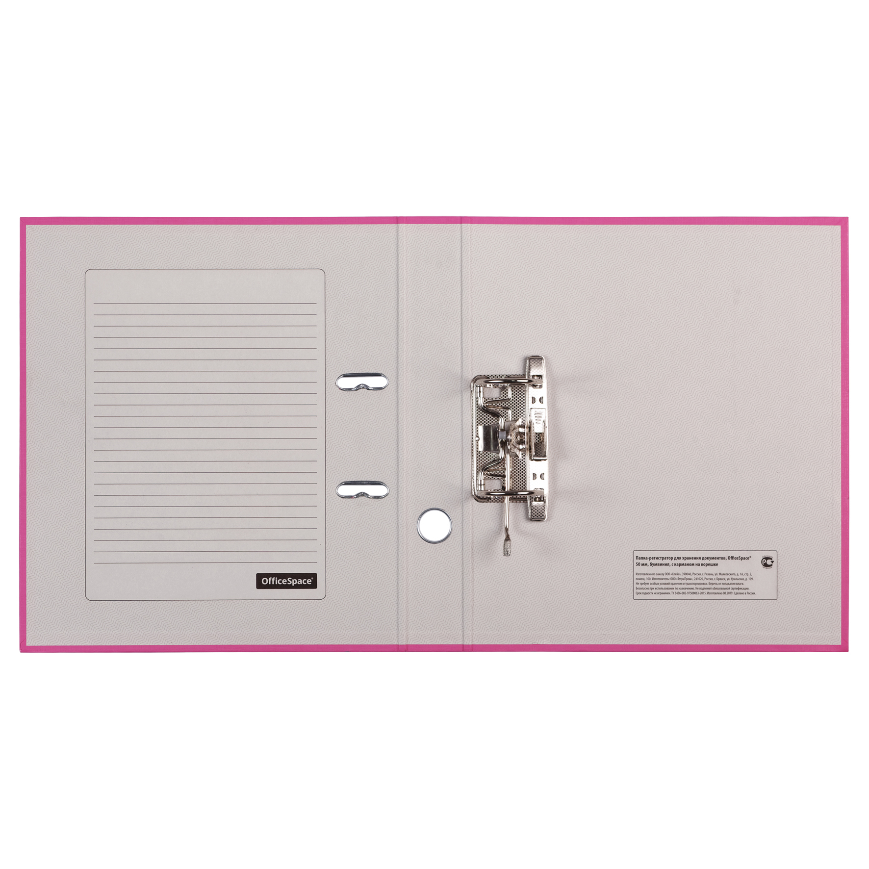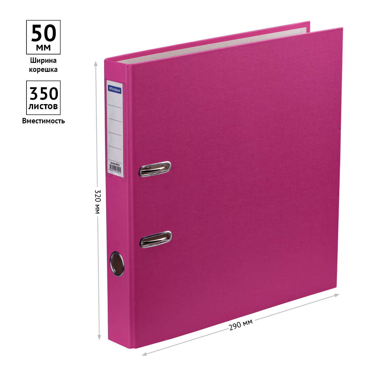 О товаре «Папка-регистратор OfficeSpace, 50мм, бумвинил, с карманом на корешке, розовая»