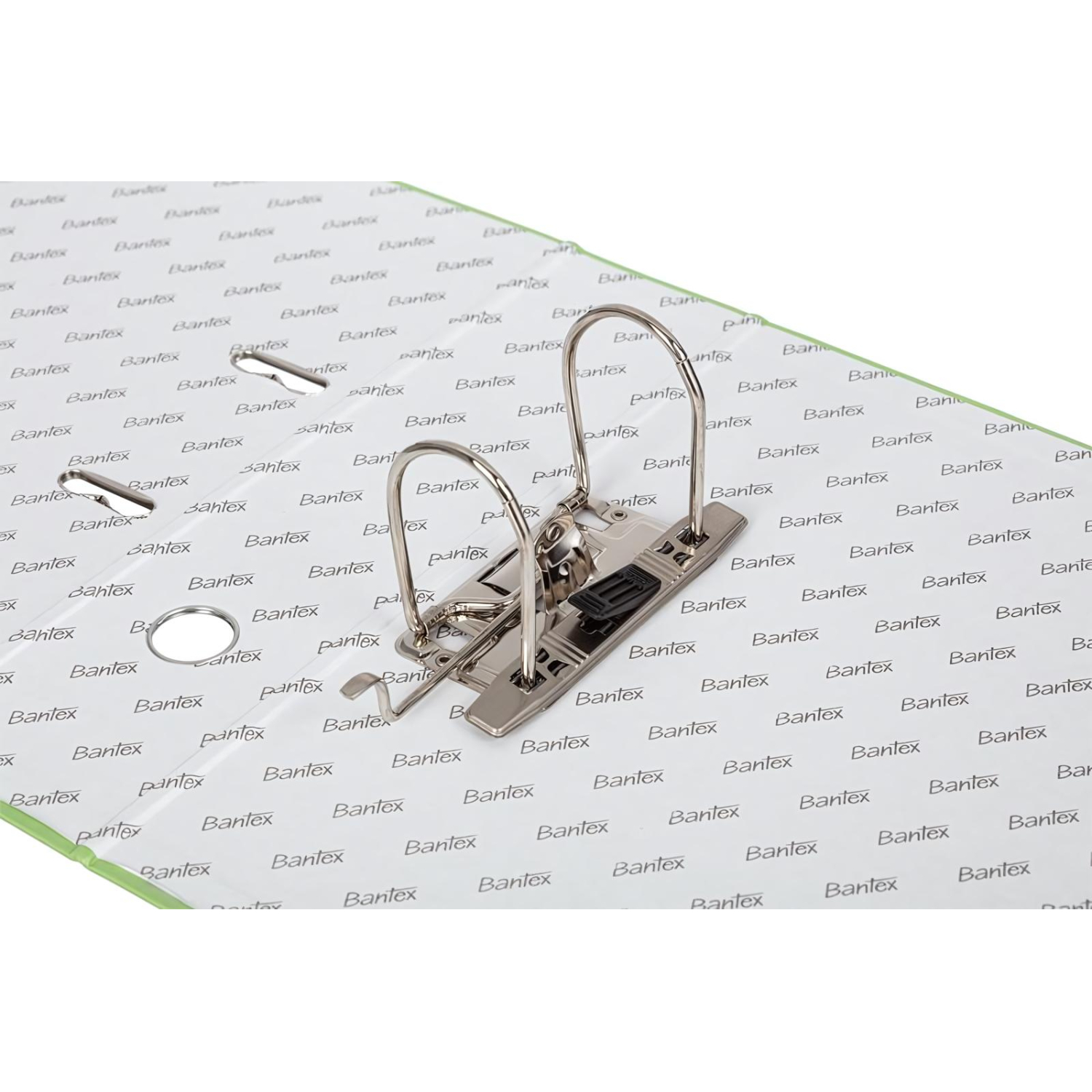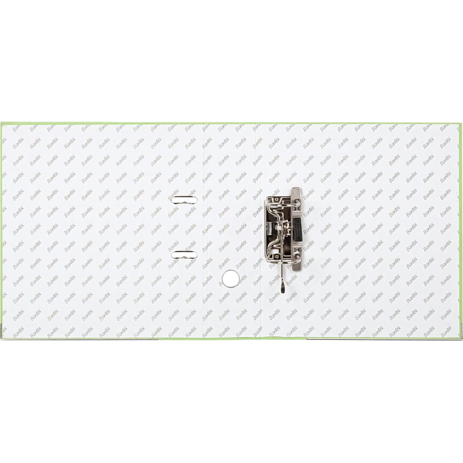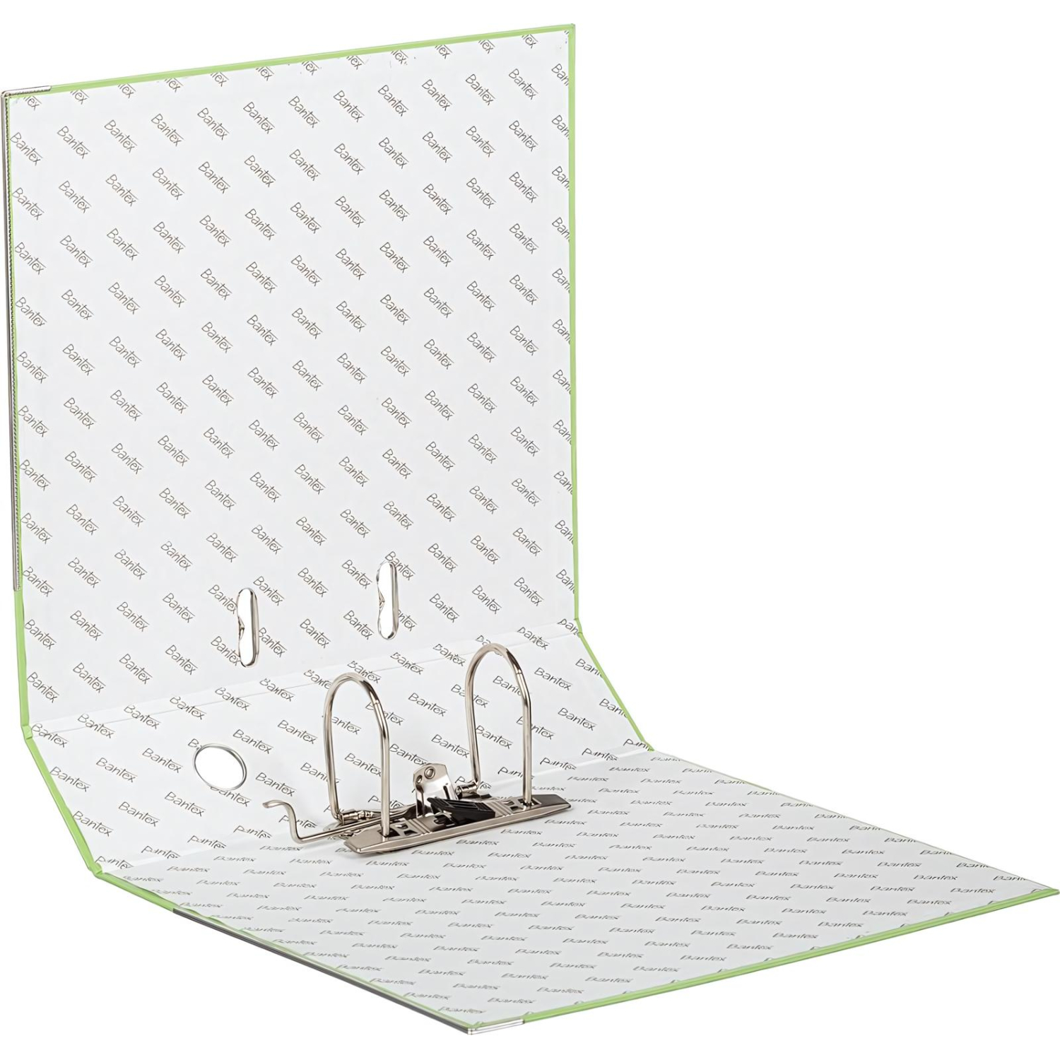 Папка-регистратор Bantex (Attache Selection) из коллекции Economy Plus изготовлена из прочного картона толщиной 1,9 мм, покрытого с внешней стороны салатовым бумвинилом, а с внутренней — бумагой с печатью Bantex. Формат А4+, папка ориентирована вертикально. Вмещает до 600 листов стандартной плотности. Оснащена арочным механизмом, произведенным в Чехии. На корешке шириной 80 мм есть карман со сменной этикеткой и круглое кольцо для удобного захвата. Овальные кольца на верхней крышке удерживают папку закрытой даже при большом количестве документов. Нижние края папки защищены металлическим кантом. Цветовая гамма включает 11 цветов.