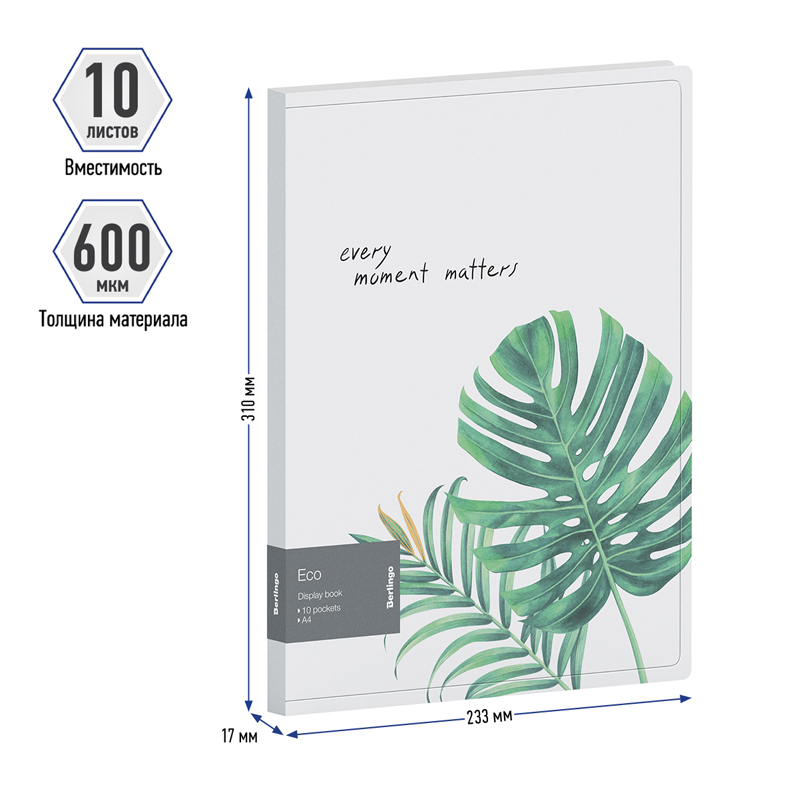 О товаре «Папка с 10 вкладышами Berlingo "Eco" А4, 17мм, 600мкм, с внутр. карманом, с рисунком»
