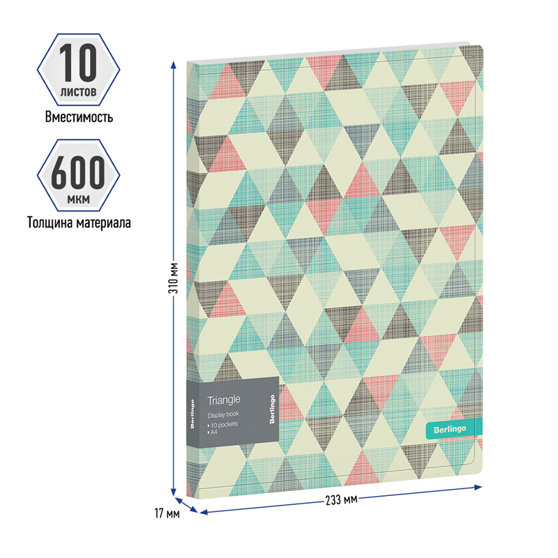 О товаре «Папка с 10 вкладышами Berlingo "Triangle" А4, 17мм, 600мкм, с внутр. карманом, с рисунком»