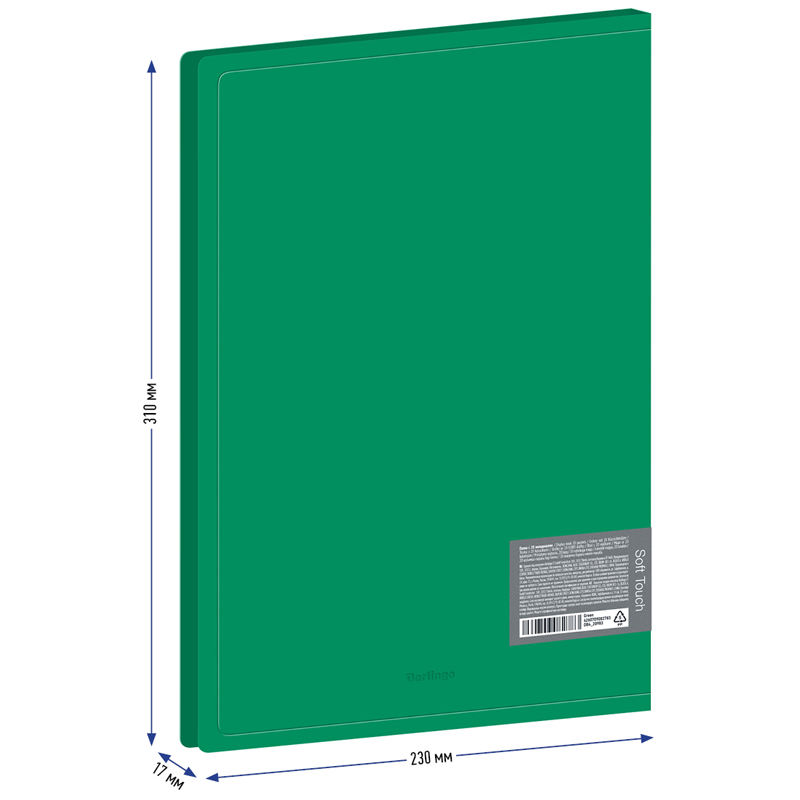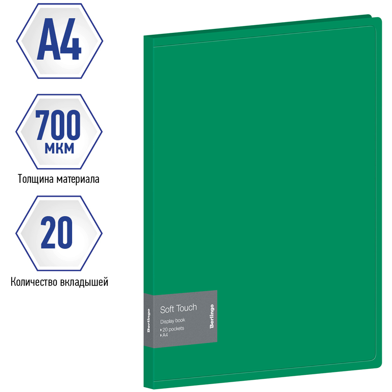 О товаре «Папка с 20 вкладышами Berlingo "Soft Touch" А4, 17мм, 700мкм, зеленая, с внутр. карманом»