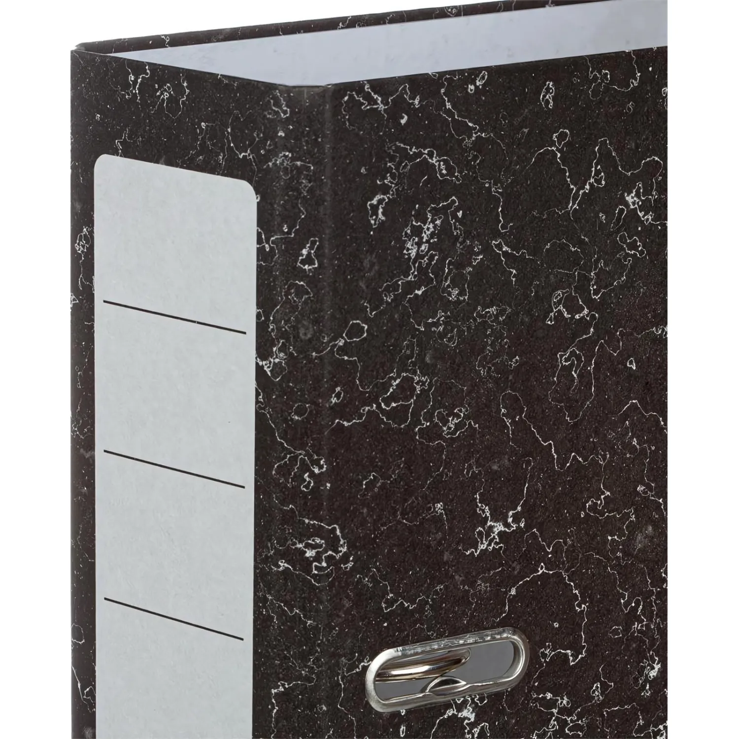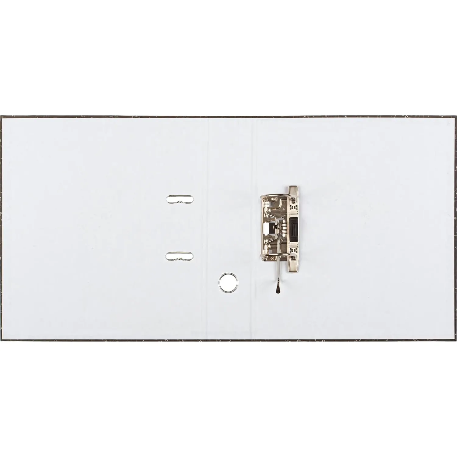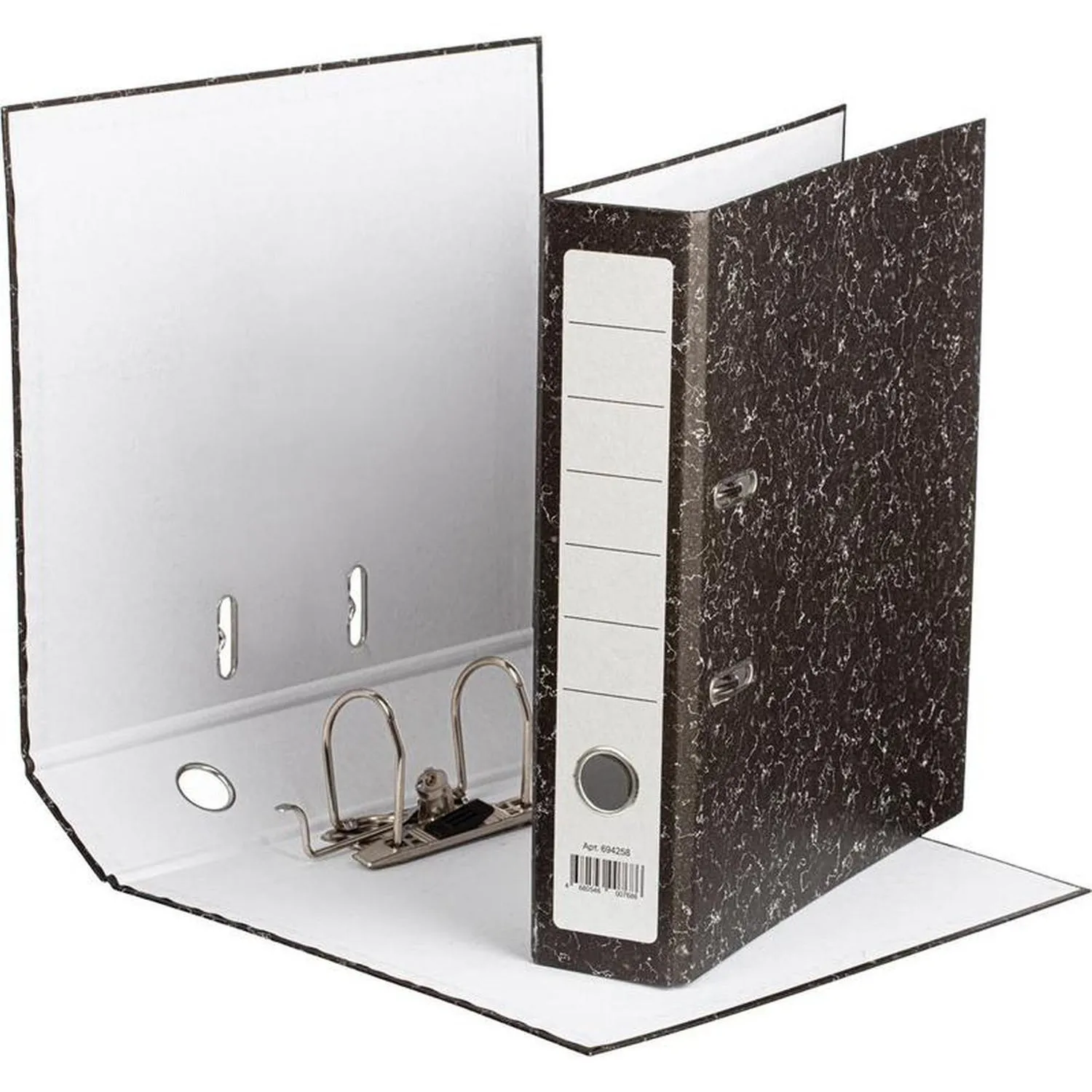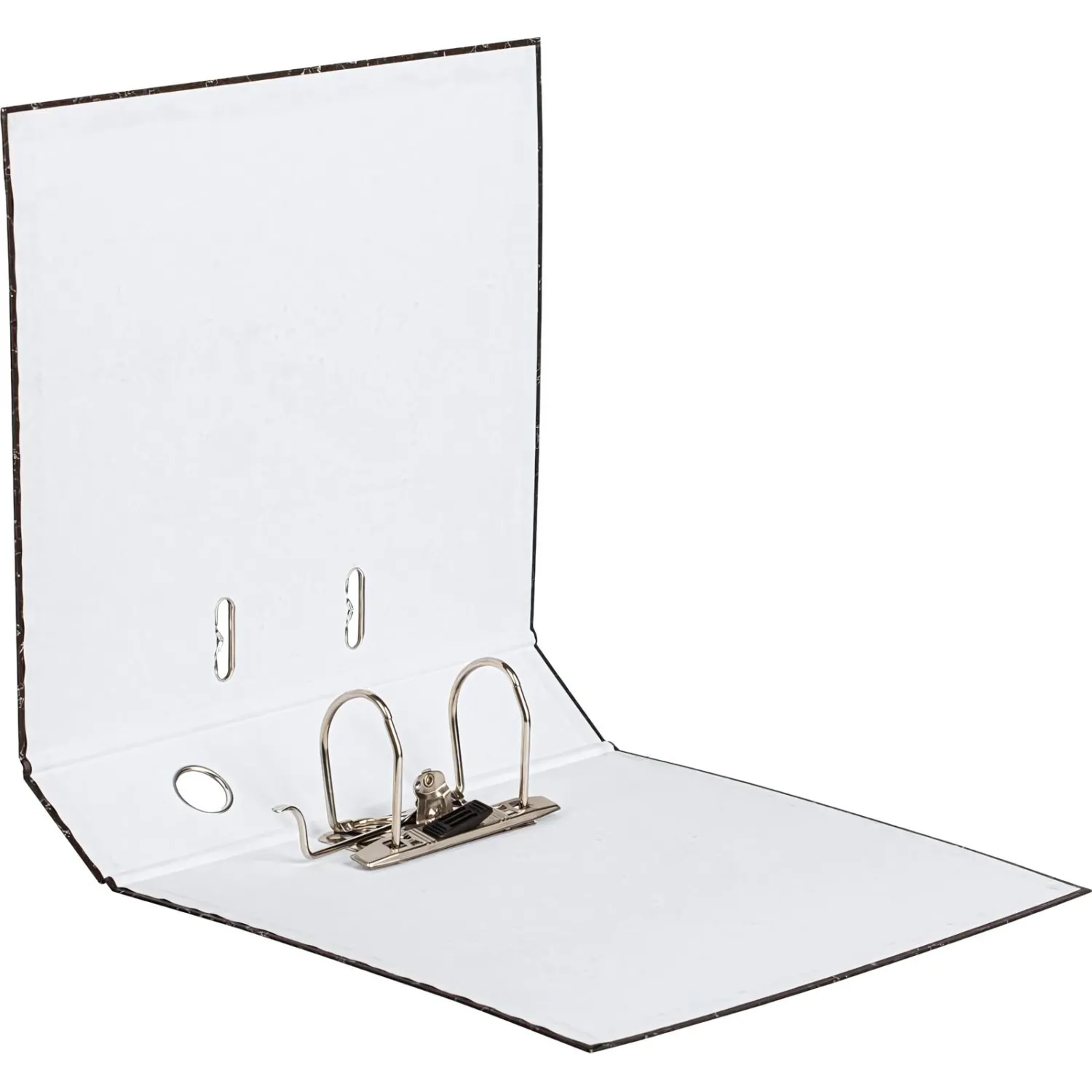 Папка-регистратор Attache (Attache Economy) с арочным механизмом изготовлена из картона, с внешней стороны оклеена износостойкой бумагой, дизайн которой имитирует мрамор. Формат А4. Арочный механизм произведен в Чехии. Прорези на внешней крышке удерживают папку закрытой даже при большом количестве документов. Есть кольцо для захвата. Папка — регистратор вмещает до 480 листов стандартной плотности.