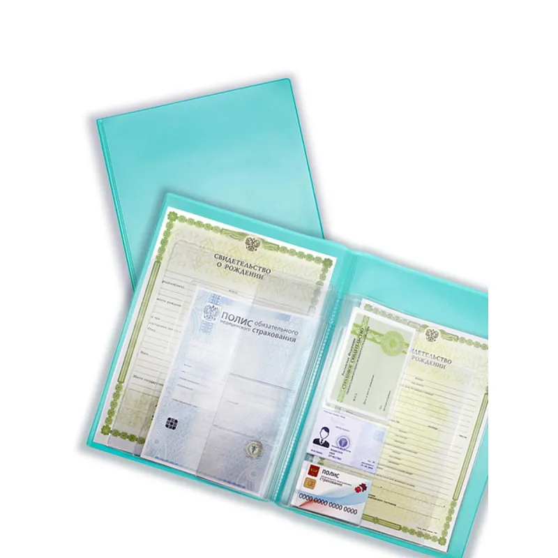 Папка для хранения личных документов. Вмещает в себя: 2 кармана для формата А4 (свидетельство о рождении нового образца с 01.01.2019 г.), 2 файла для свидетельств о рождении старого образца, 2 файла для ОМС, карманы для карт ОМС, СНИЛС и дугих документов