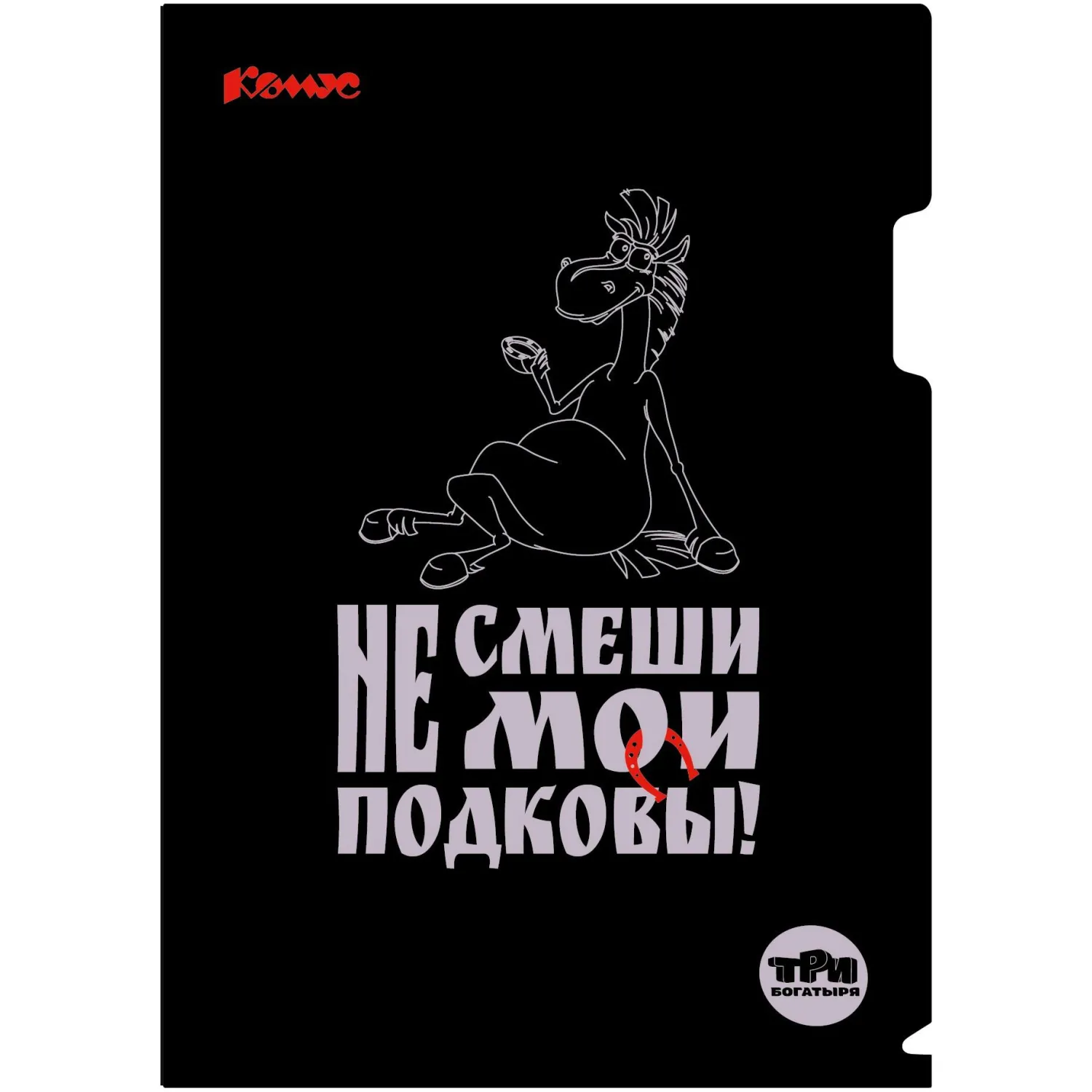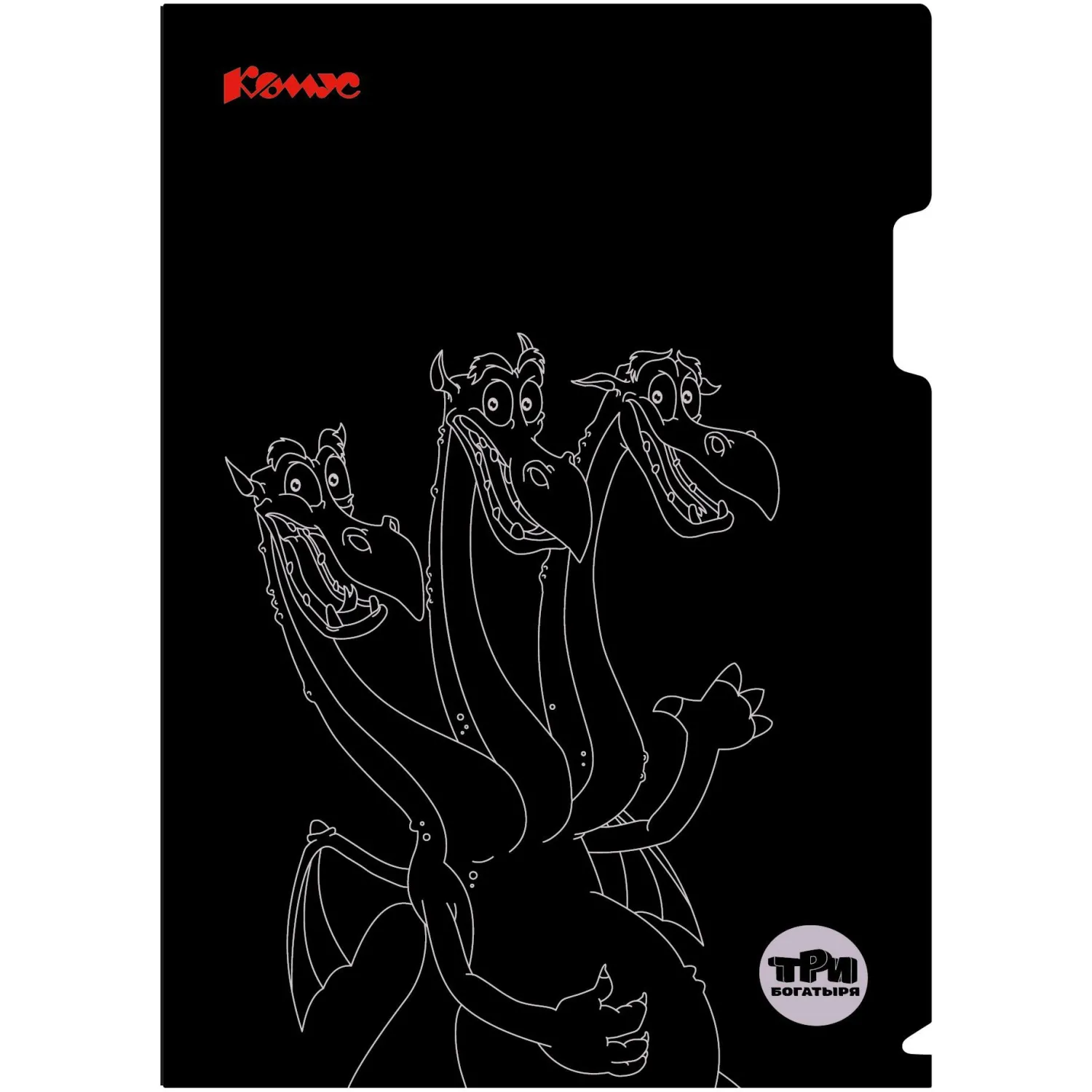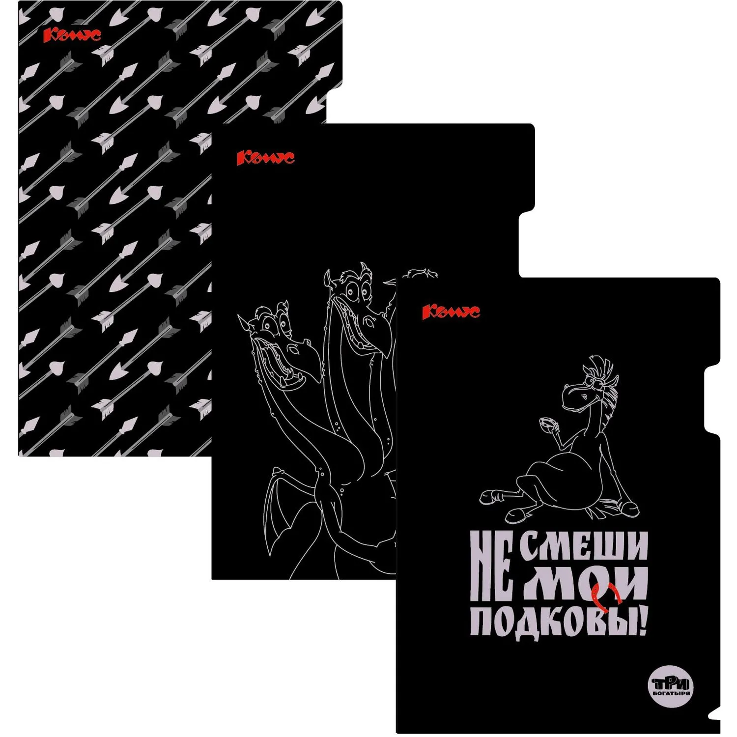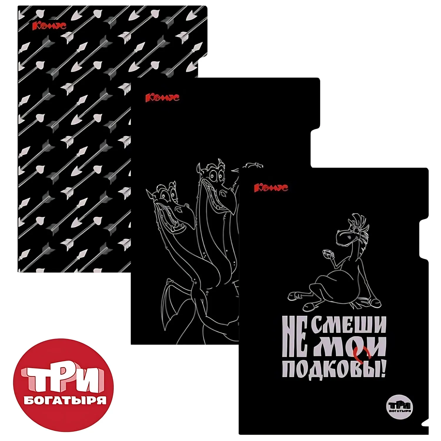 Папка-уголок Комус Три Богатыря А4 пластиковая 180 мкм черная (3 штуки в упаковке)