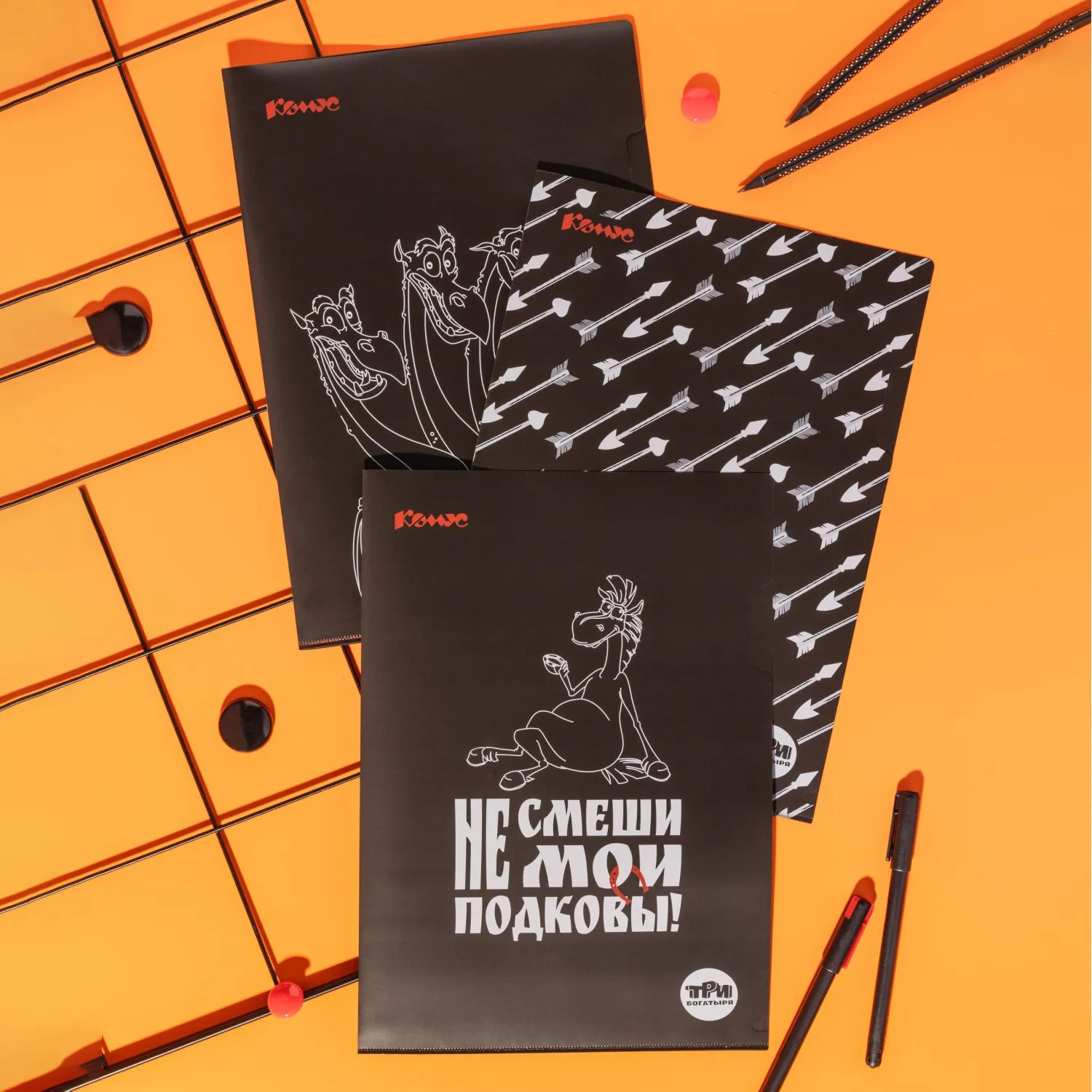 О товаре «Папка-уголок Комус Три Богатыря А4 пластиковая 180 мкм черная (3 штуки в упаковке)»