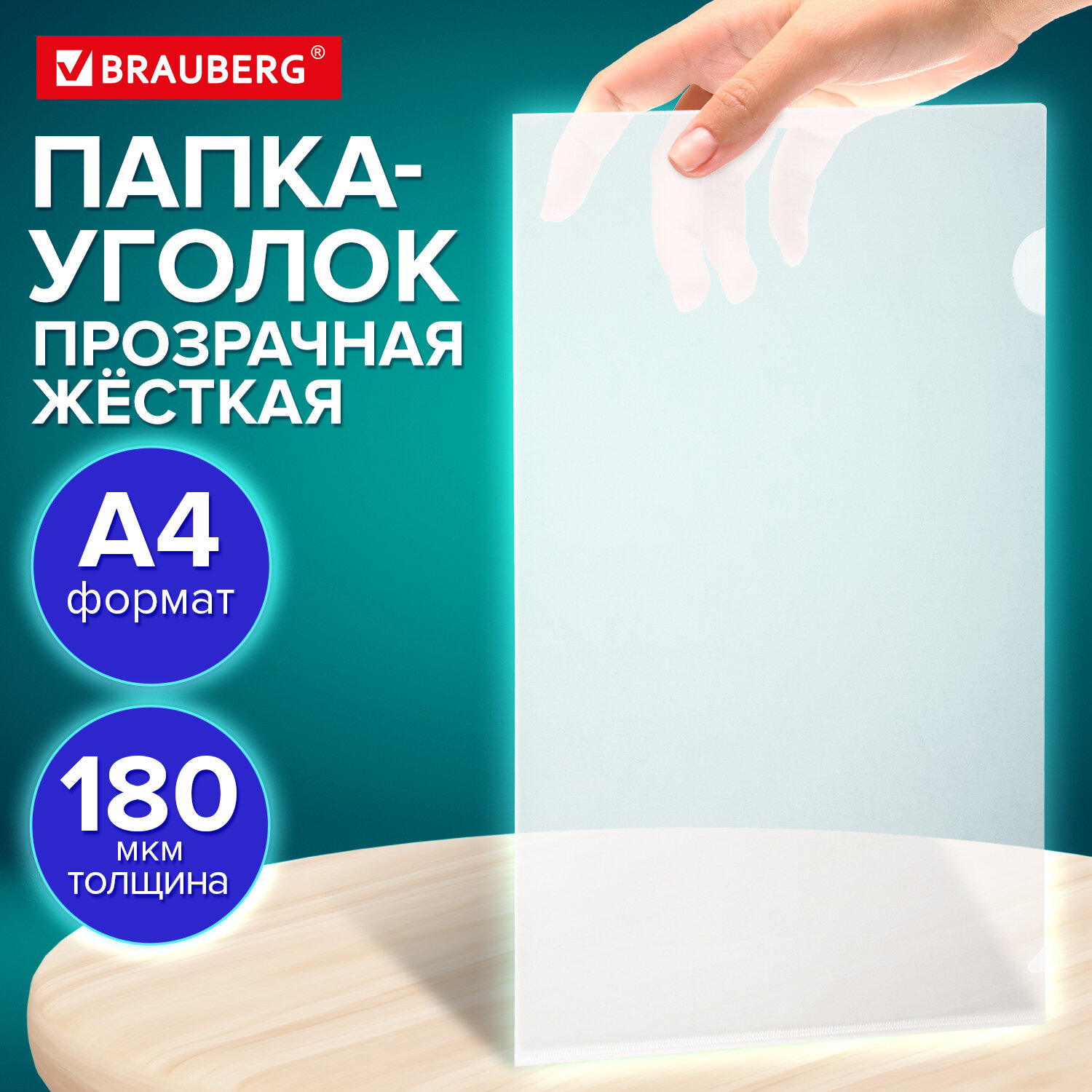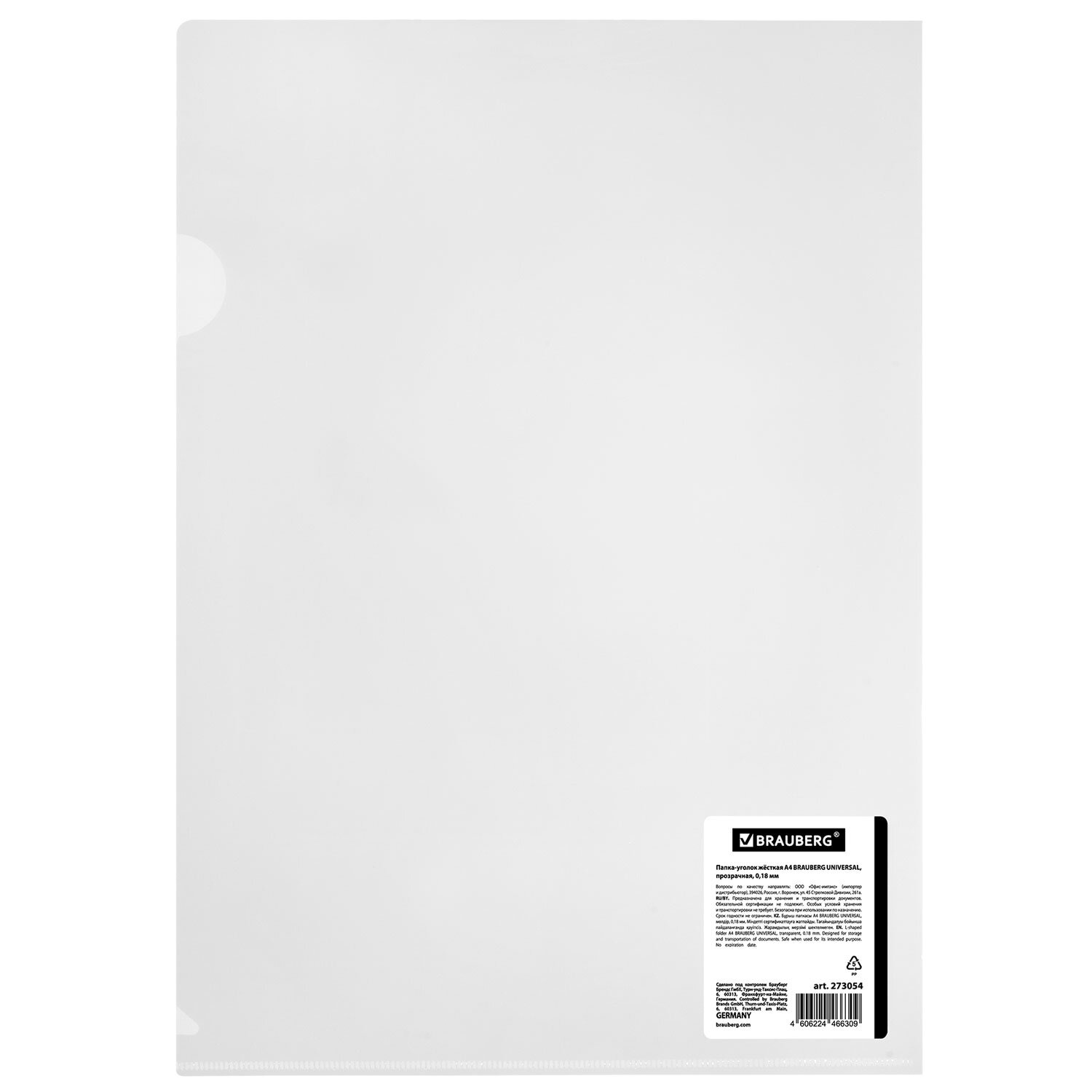 Папка-уголок жесткая А4 BRAUBERG UNIVERSAL, прозрачная, 0,18 мм, 273054